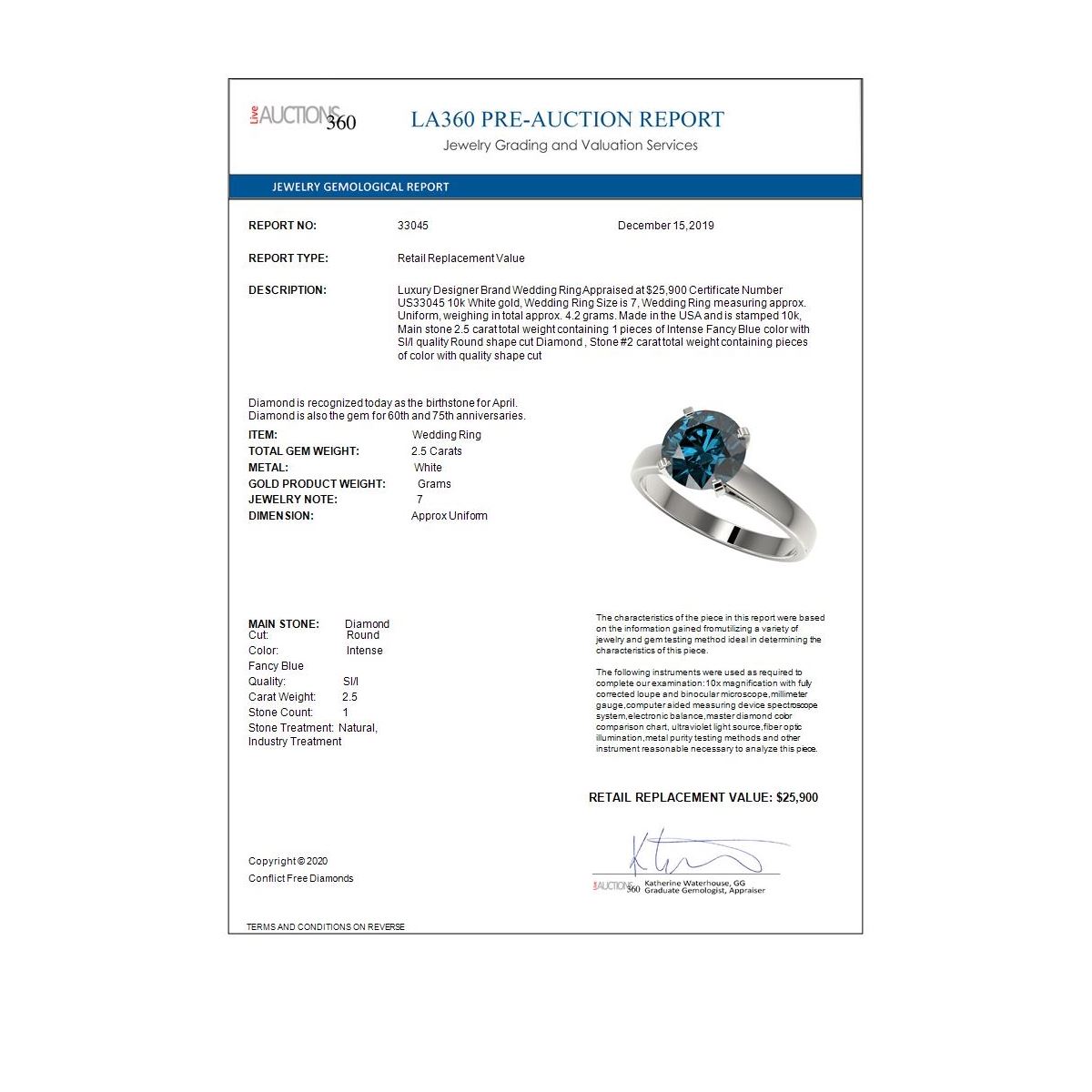 REF-454Y3X - SKU: 33045 ---- 2.50 ctw Certified Intense Blue Diamond Engagment Ring 10k White Gold