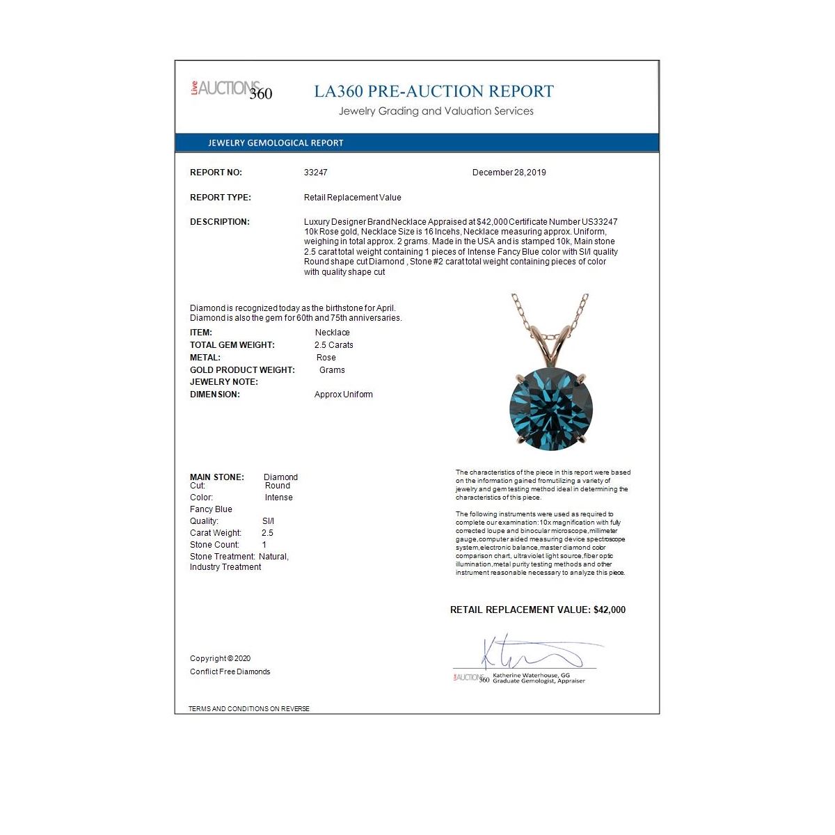 REF-429A5N - SKU: 33247 ---- 2.50 ctw Certified Intense Blue Diamond Necklace 10k Rose Gold