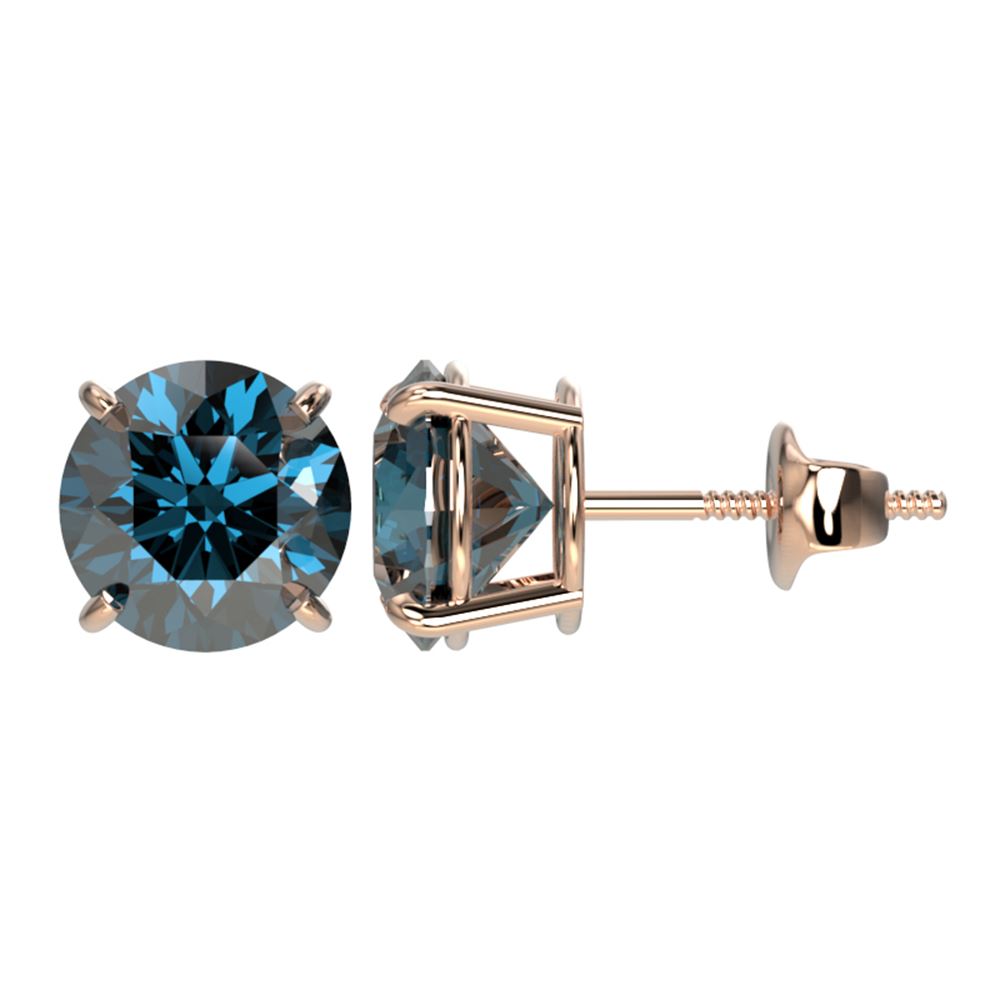 REF-228W3H - SKU: 33107 ---- 2.50 ctw Certified Intense Blue Diamond Stud Earrings 10k Rose Gold