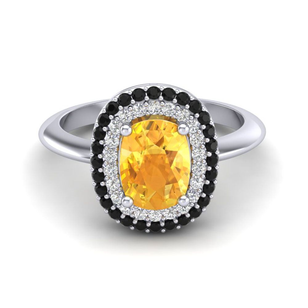 REF-49R5K - SKU: 20729 ---- 2.50 ctw Citrine With Black & White Micro Diamond Ring 14k White Gold