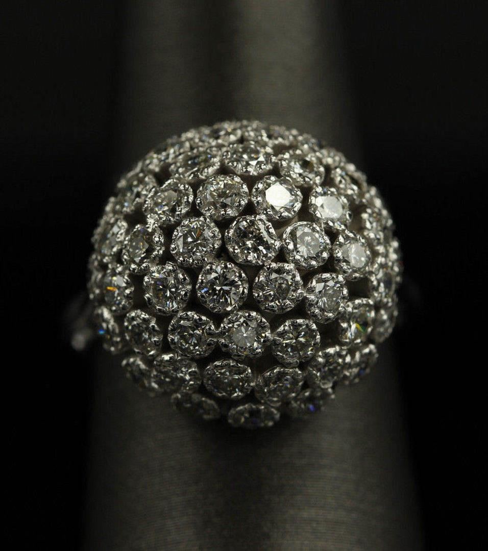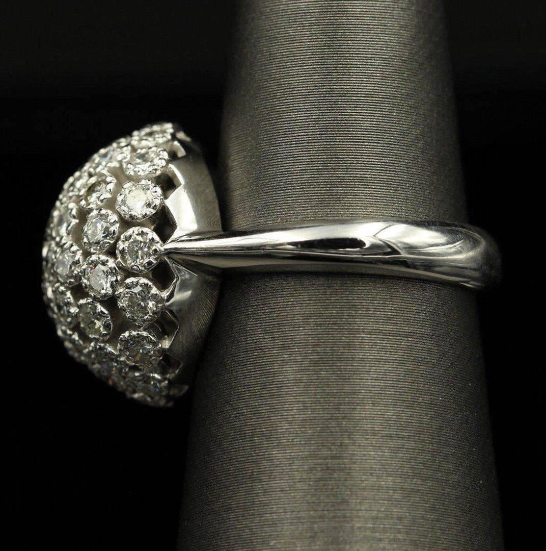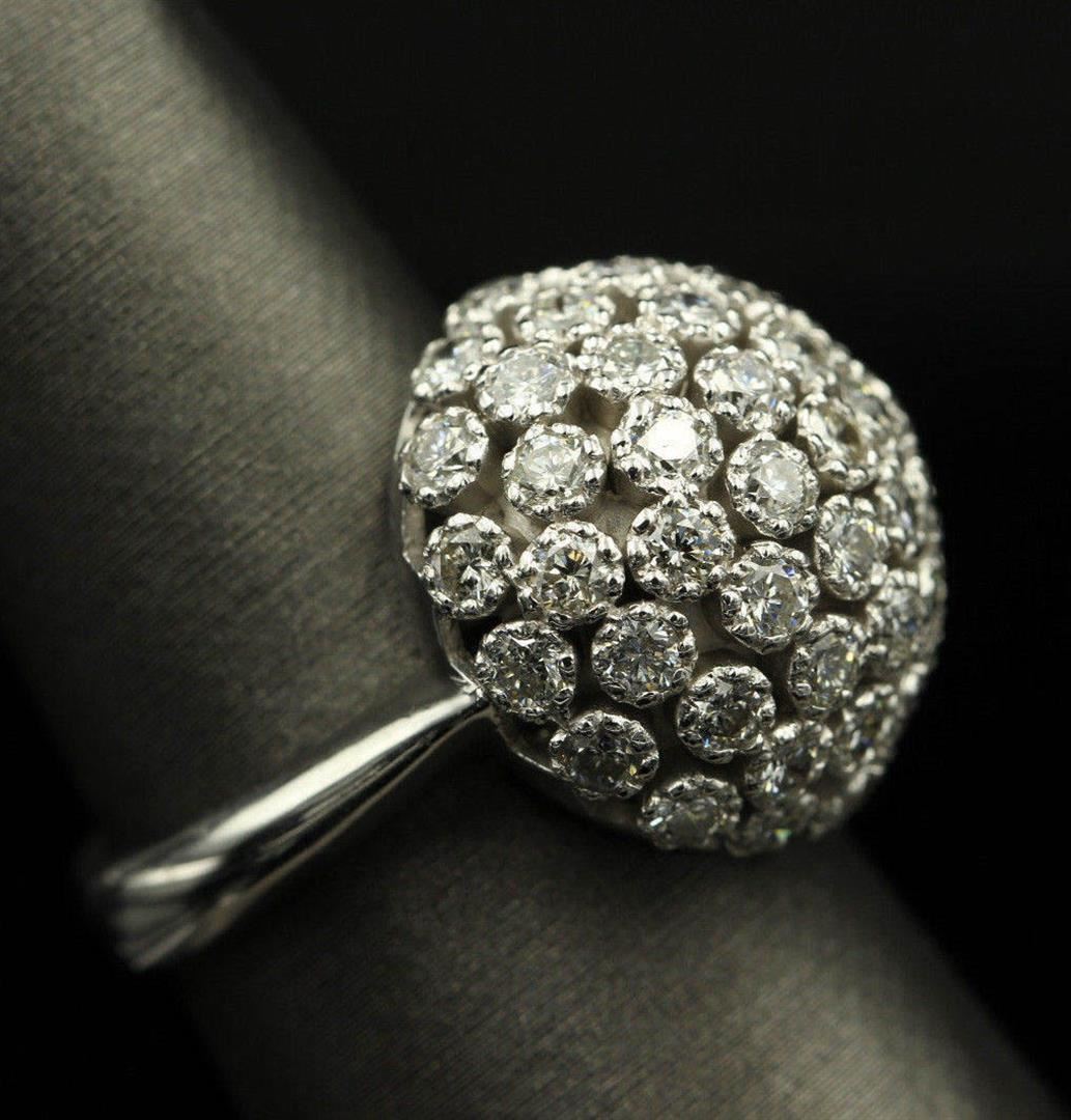 One flower design ring featuring: 14KT white gold weighing 10.58 grams containing 50 diamonds weighing 2.50ctw. The diamonds are round brilliant cut and are natural, unenhanced stones with SI-1 clarity, G-H color and excellent cut. The ring size is 6 but