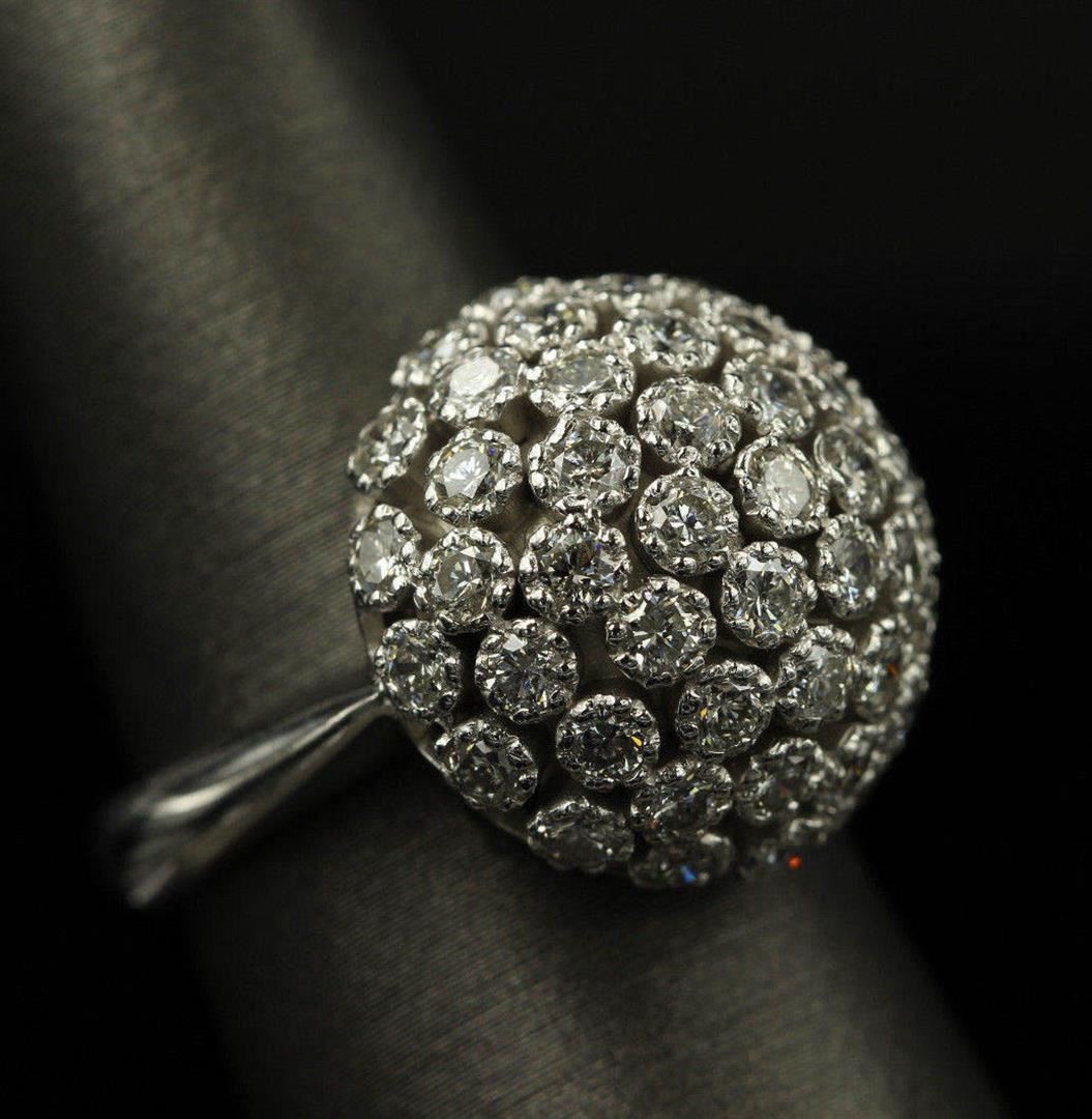 One flower design ring featuring: 14KT white gold weighing 10.58 grams containing 50 diamonds weighing 2.50ctw. The diamonds are round brilliant cut and are natural, unenhanced stones with SI-1 clarity, G-H color and excellent cut. The ring size is 6 but