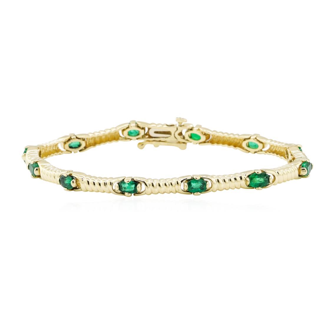 One bracelet featuring: 14KT yellow gold weighing 11.8 grams containing emeralds weighing 2.50ctw. The bracelets measures approximately seven inches in length.