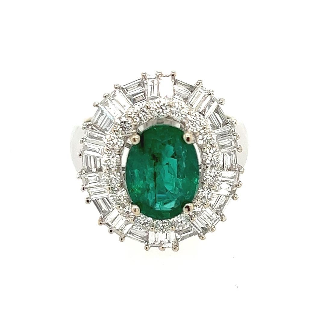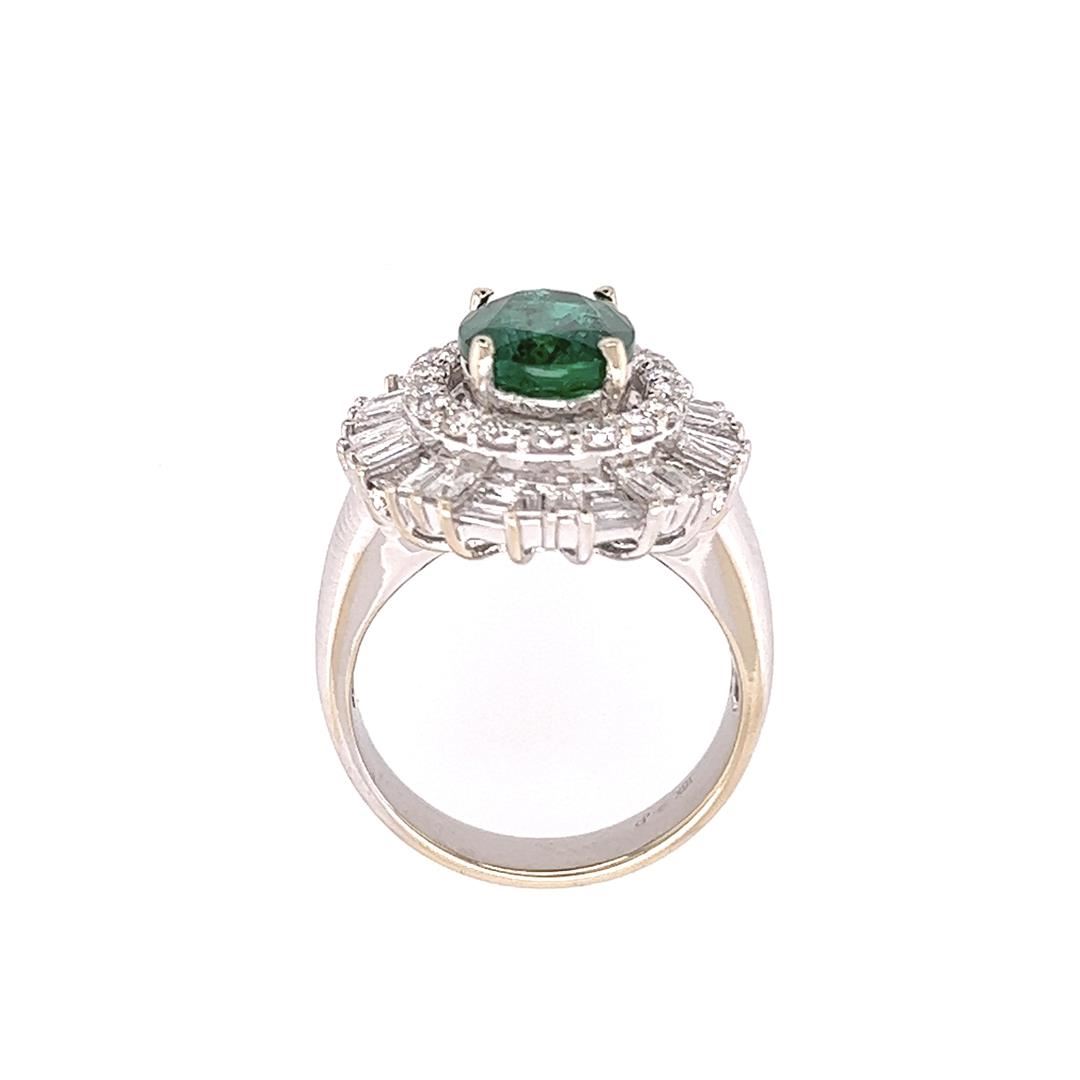 One electronically tested 18KT white gold lady's combination cast & assembled fashion ring with a double basket halo with a bright polish finish. Condition is new. good workmanship. The featured lady's ring has a shank measuring 3.65 millimeters wide. Ide