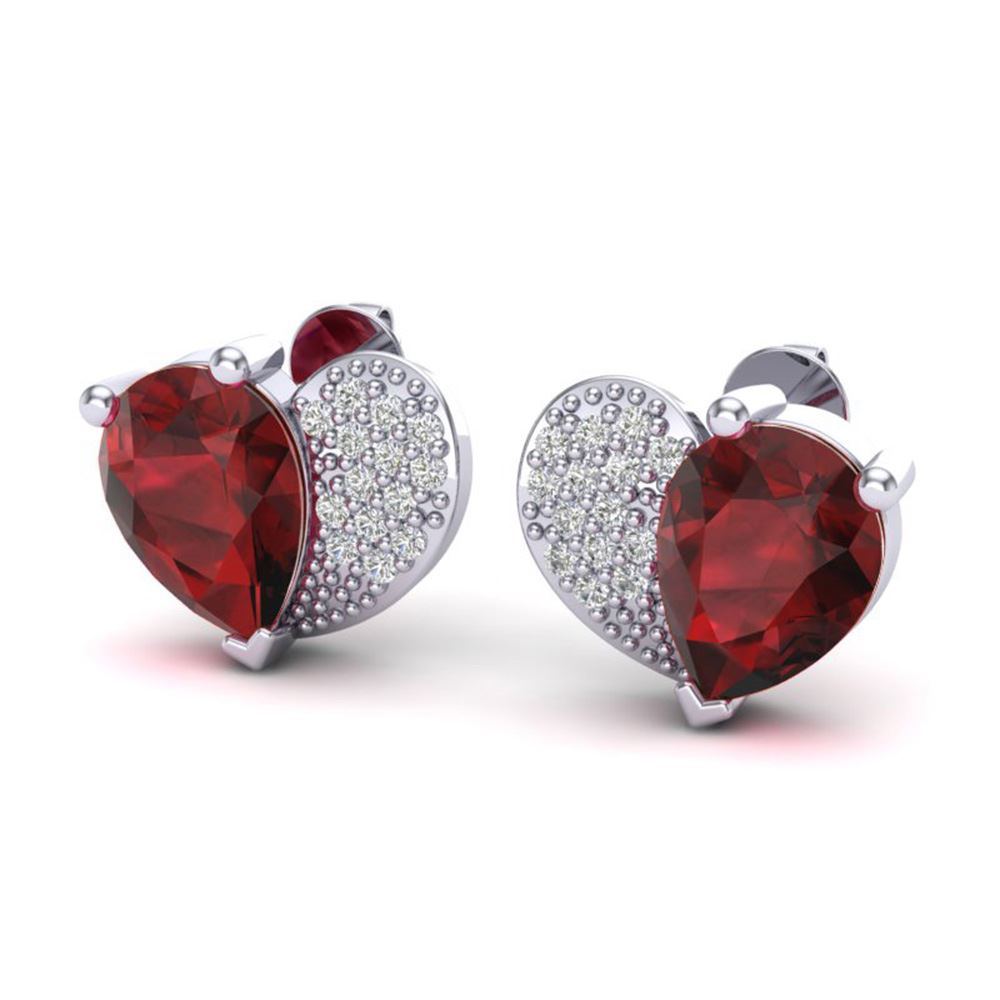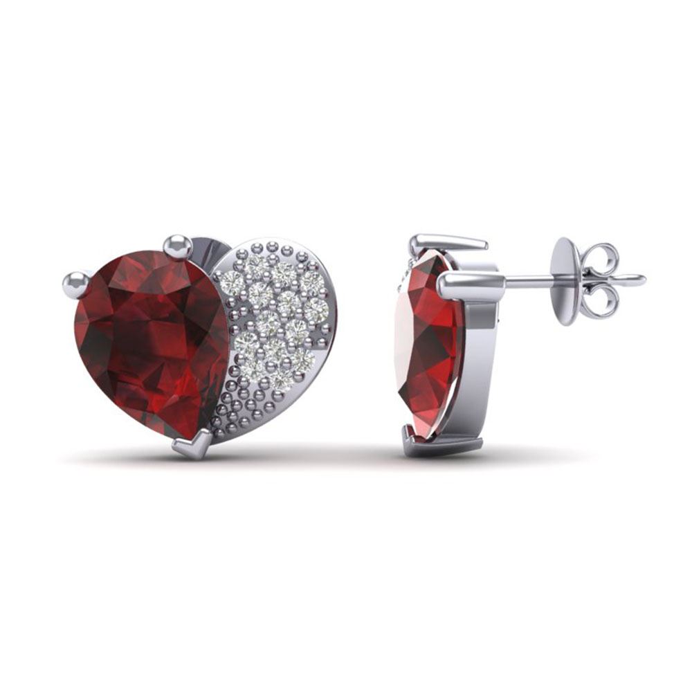 REF-22H5R - SKU: 20075 ---- 2.50 ctw Garnet & Micro Pave VS/SI Diamond Earrings 10k White Gold