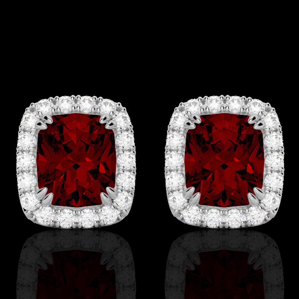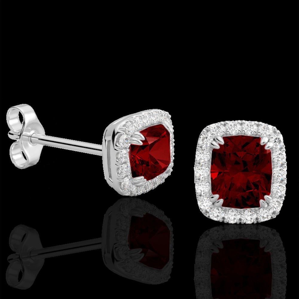 REF-34N3F - SKU: 22863 ---- 2.50 ctw Garnet & Micro Pave VS/SI Diamond Earrings 10k White Gold