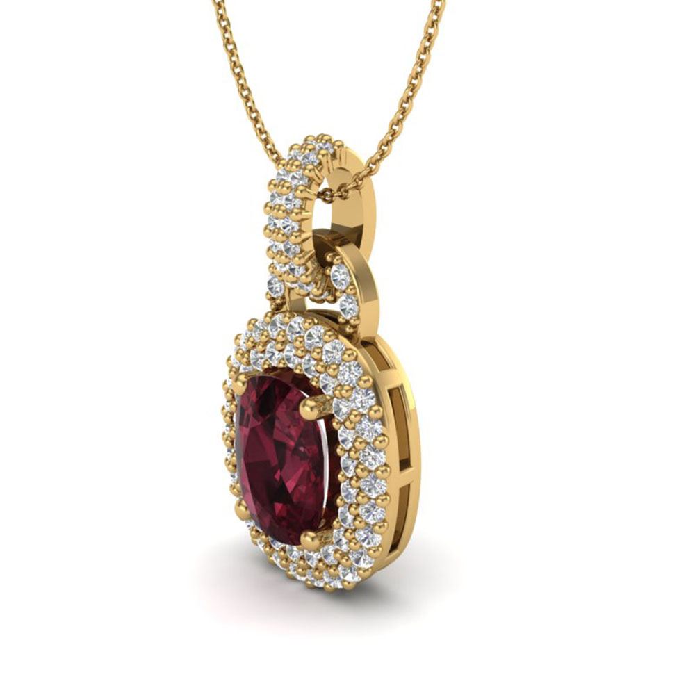 REF-52W8H - SKU: 20441 ---- 2.50 ctw Garnet & Micro Pave VS/SI Diamond Necklace 14k Yellow Gold