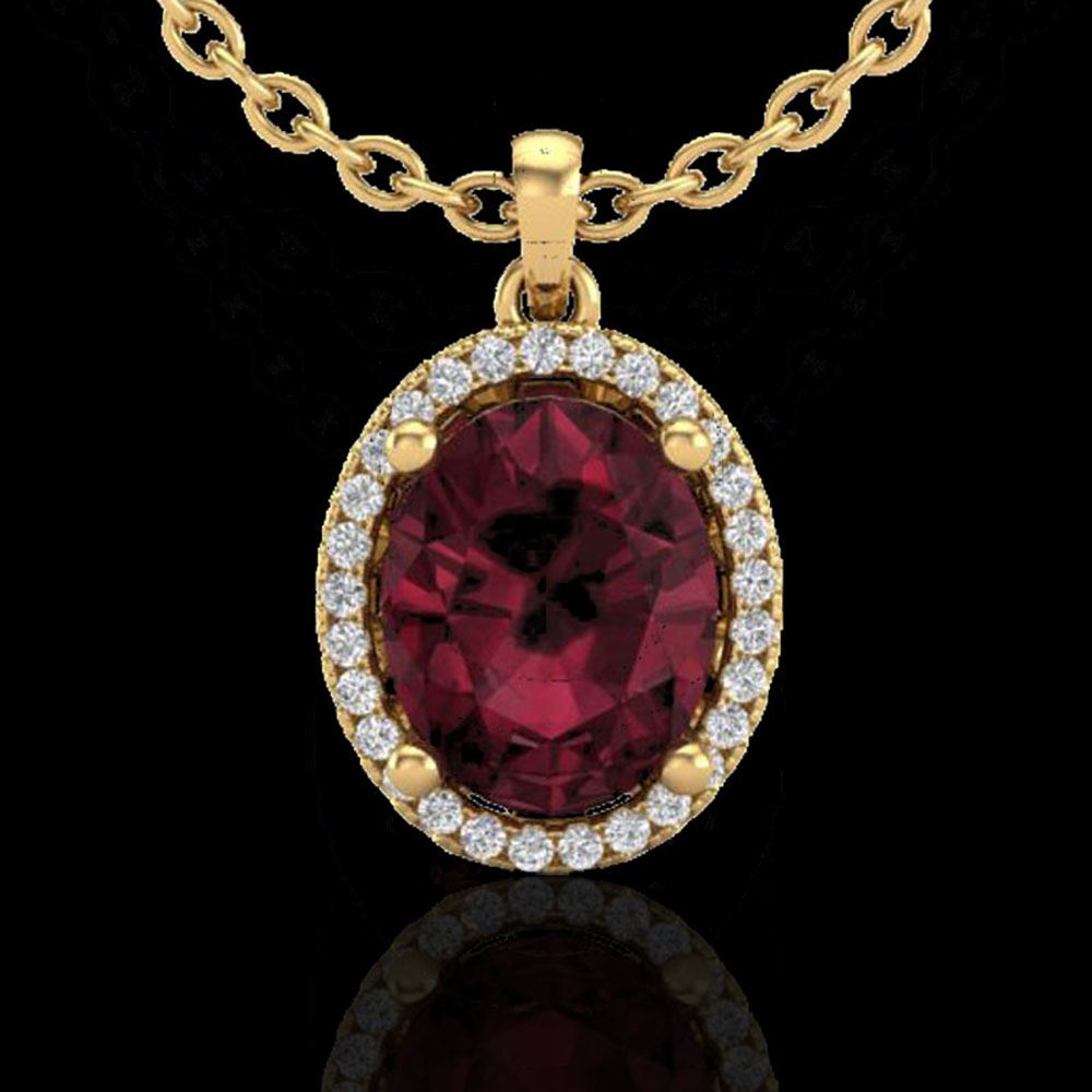 REF-33Y8X - SKU: 21082 ---- 2.50 ctw Garnet & Micro Pave VS/SI Diamond Necklace 18k Yellow Gold