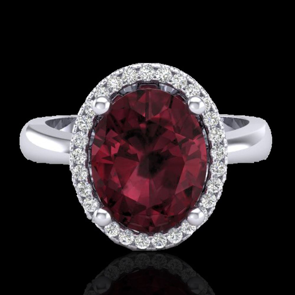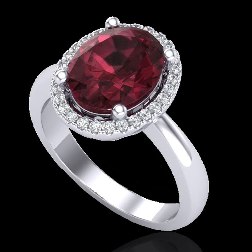 REF-38Y8X - SKU: 21106 ---- 2.50 ctw Garnet & Micro Pave VS/SI Diamond Ring 18k White Gold