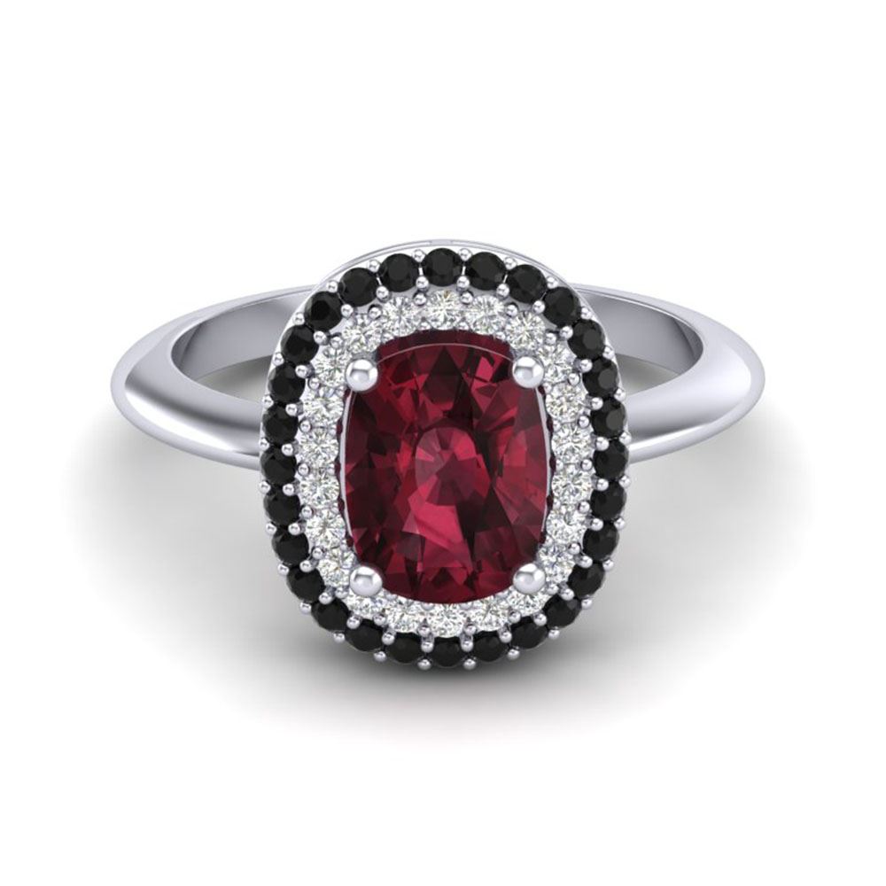 REF-49H5R - SKU: 20732 ---- 2.50 ctw Garnet With Black & White Micro Diamond Ring 14k White Gold