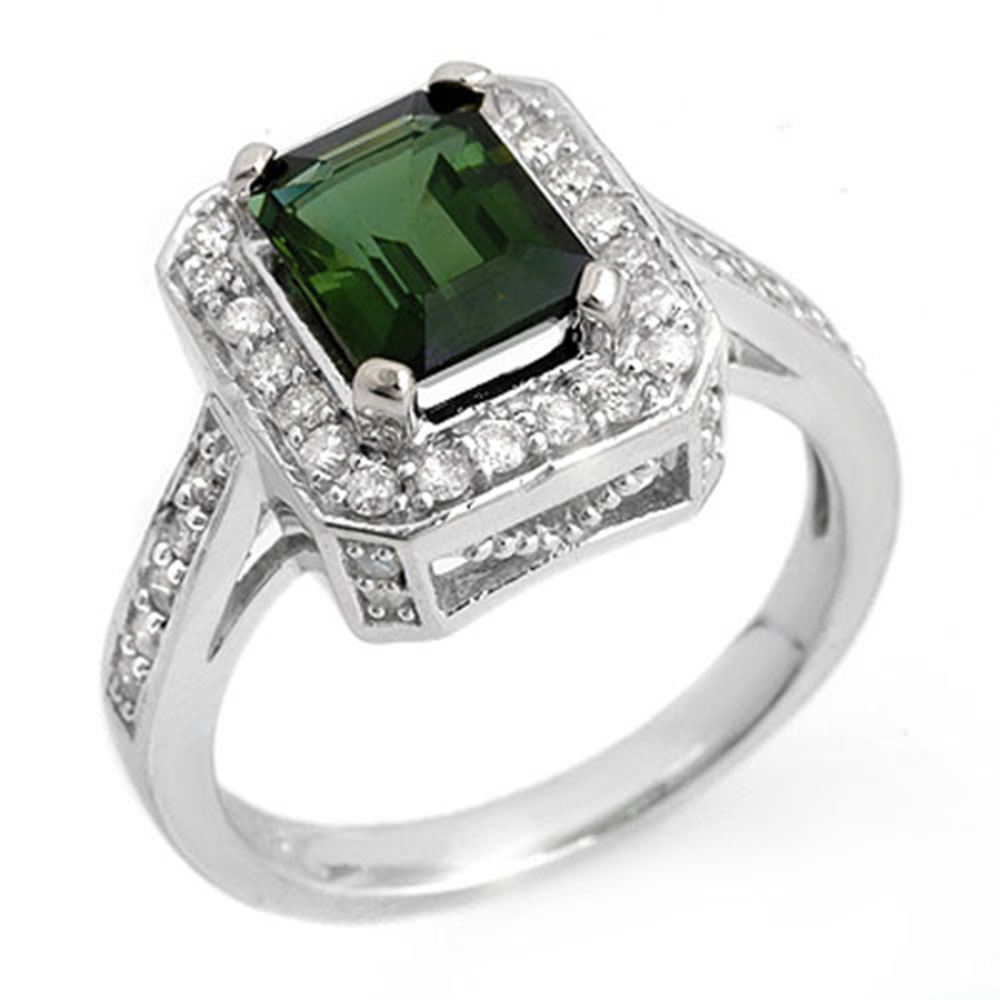 REF-101N8F - SKU: 10320 ---- 2.50 ctw Green Tourmaline & Diamond Ring 18k White Gold