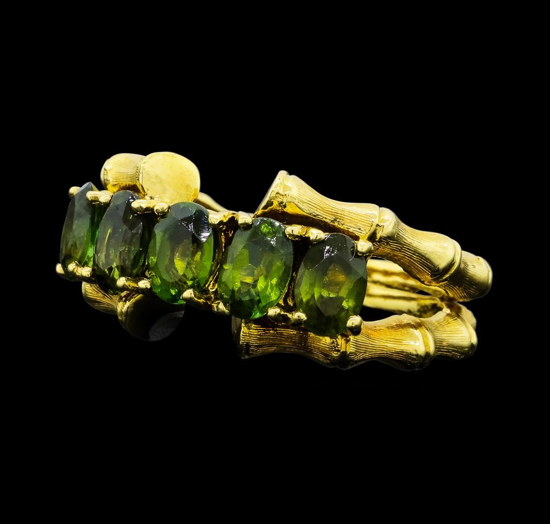 One bamboo motif ring with a split shank featuring: 18KT yellow gold weighing 7.9 grams containing five green tourmalines weighing approximately 2.50ctw.