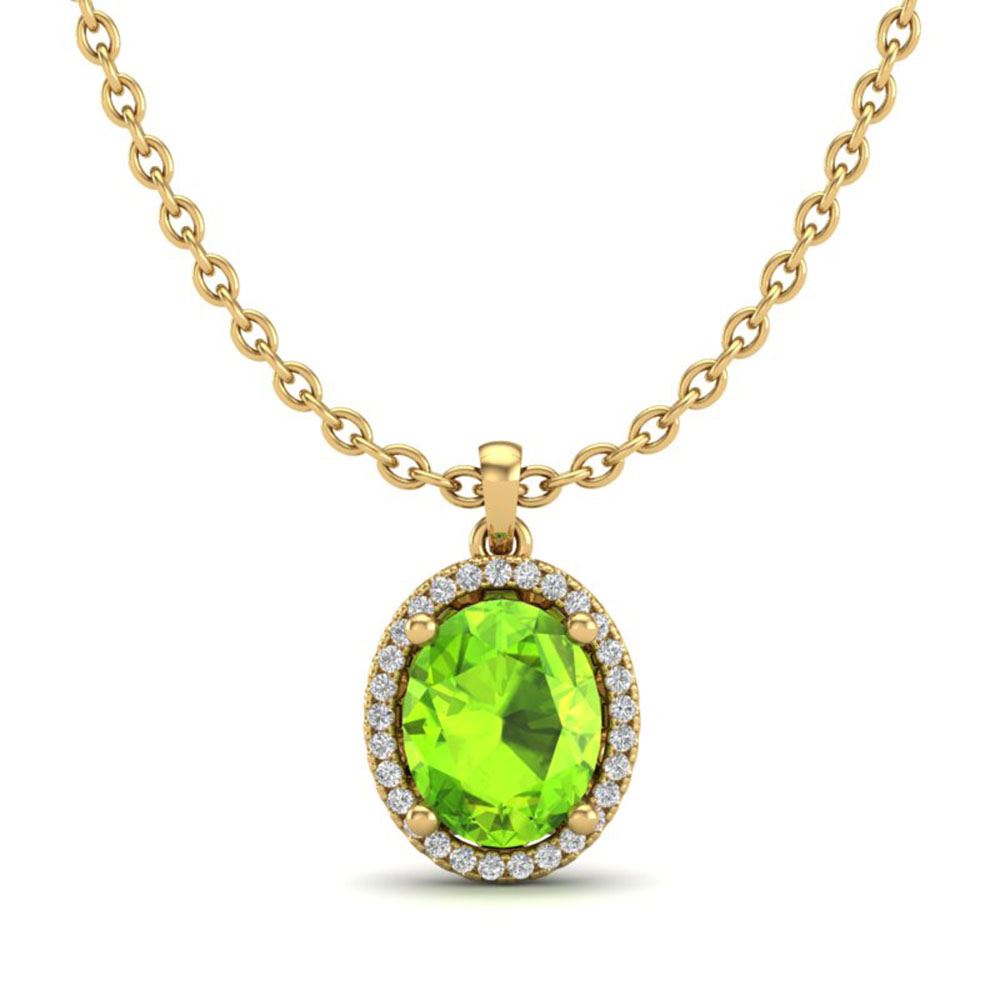 REF-39A8N - SKU: 21086 ---- 2.50 ctw Peridot & Micro Pave VS/SI Diamond Necklace 18k Yellow Gold