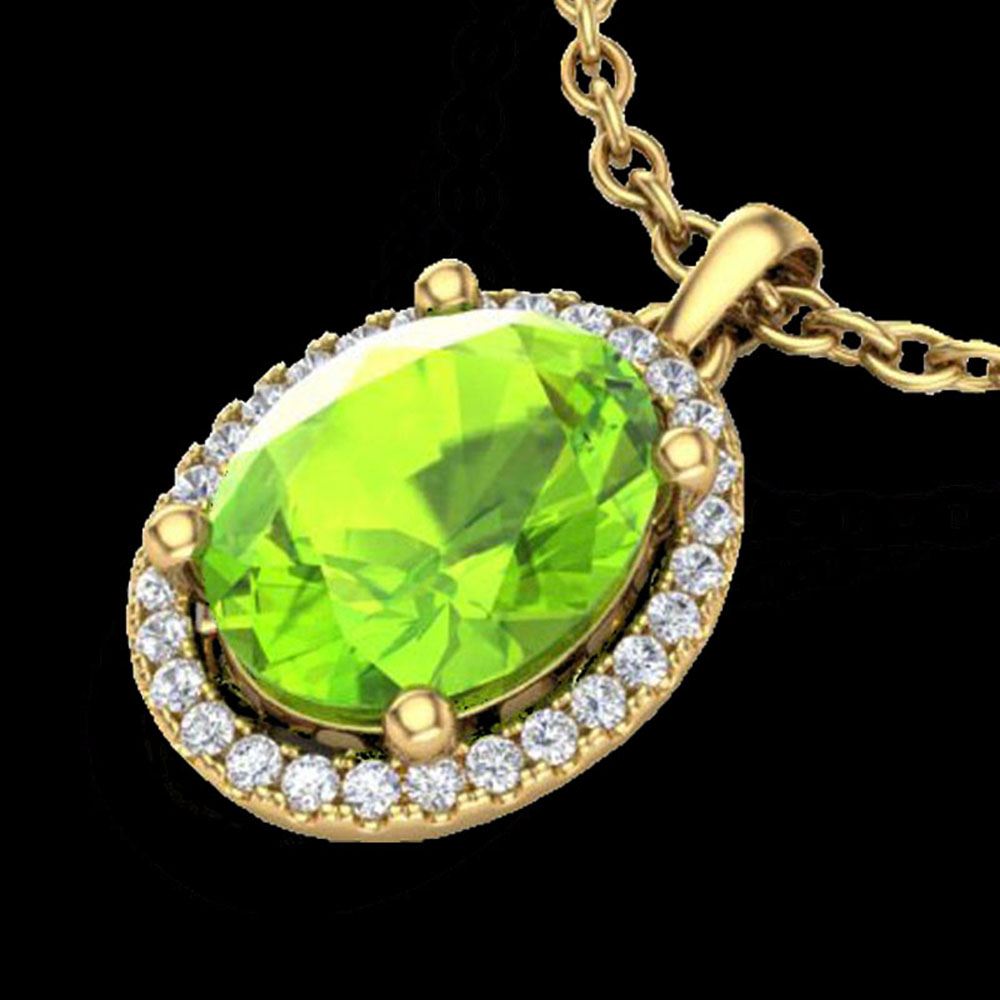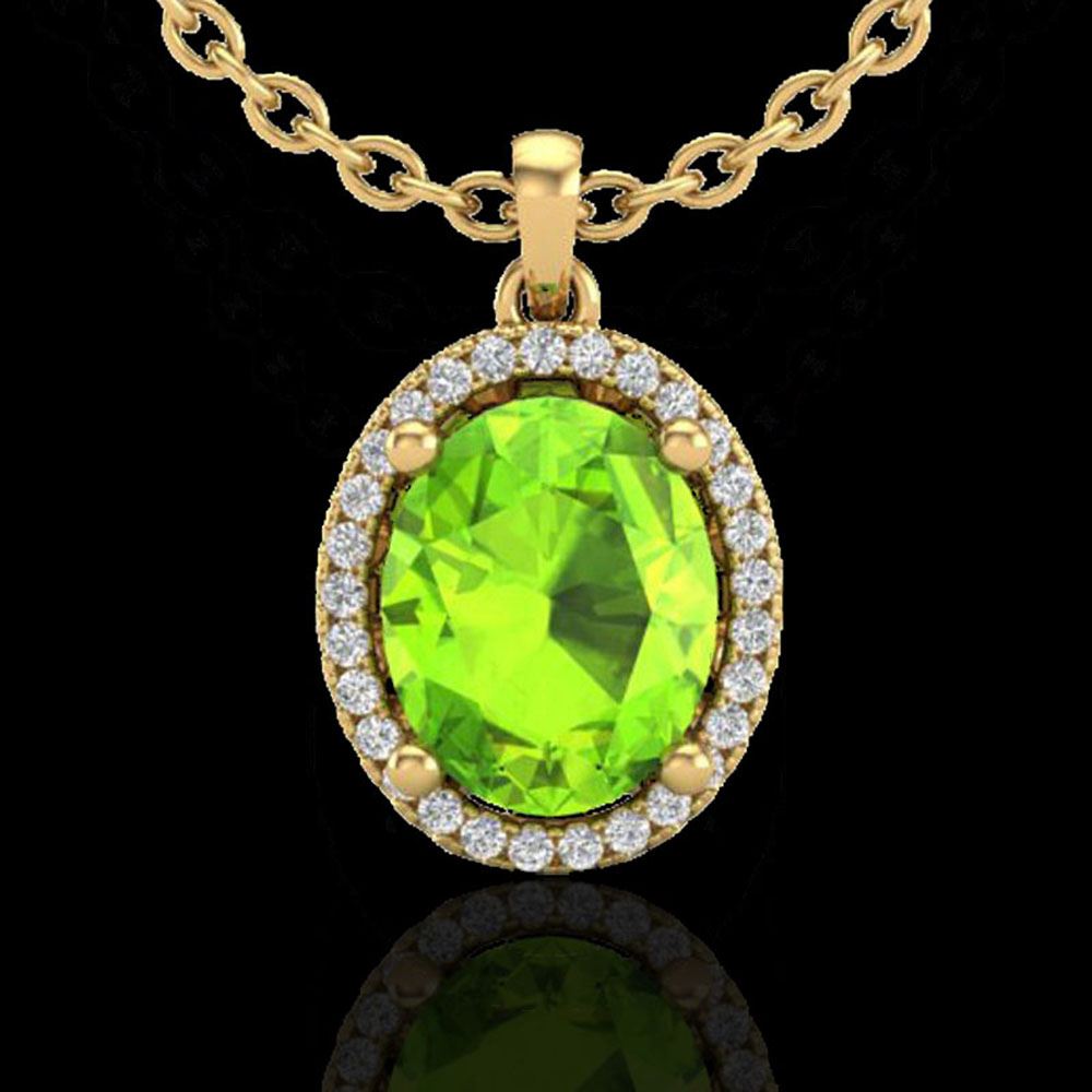 REF-39F8M - SKU: 21086 ---- 2.50 ctw Peridot & Micro Pave VS/SI Diamond Necklace 18k Yellow Gold