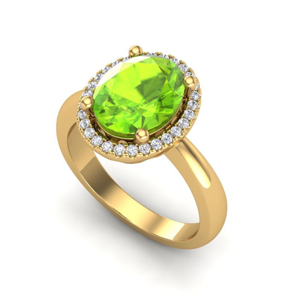 REF-42N4F - SKU: 21111 ---- 2.50 ctw Peridot & Micro Pave VS/SI Diamond Ring 18k Yellow Gold
