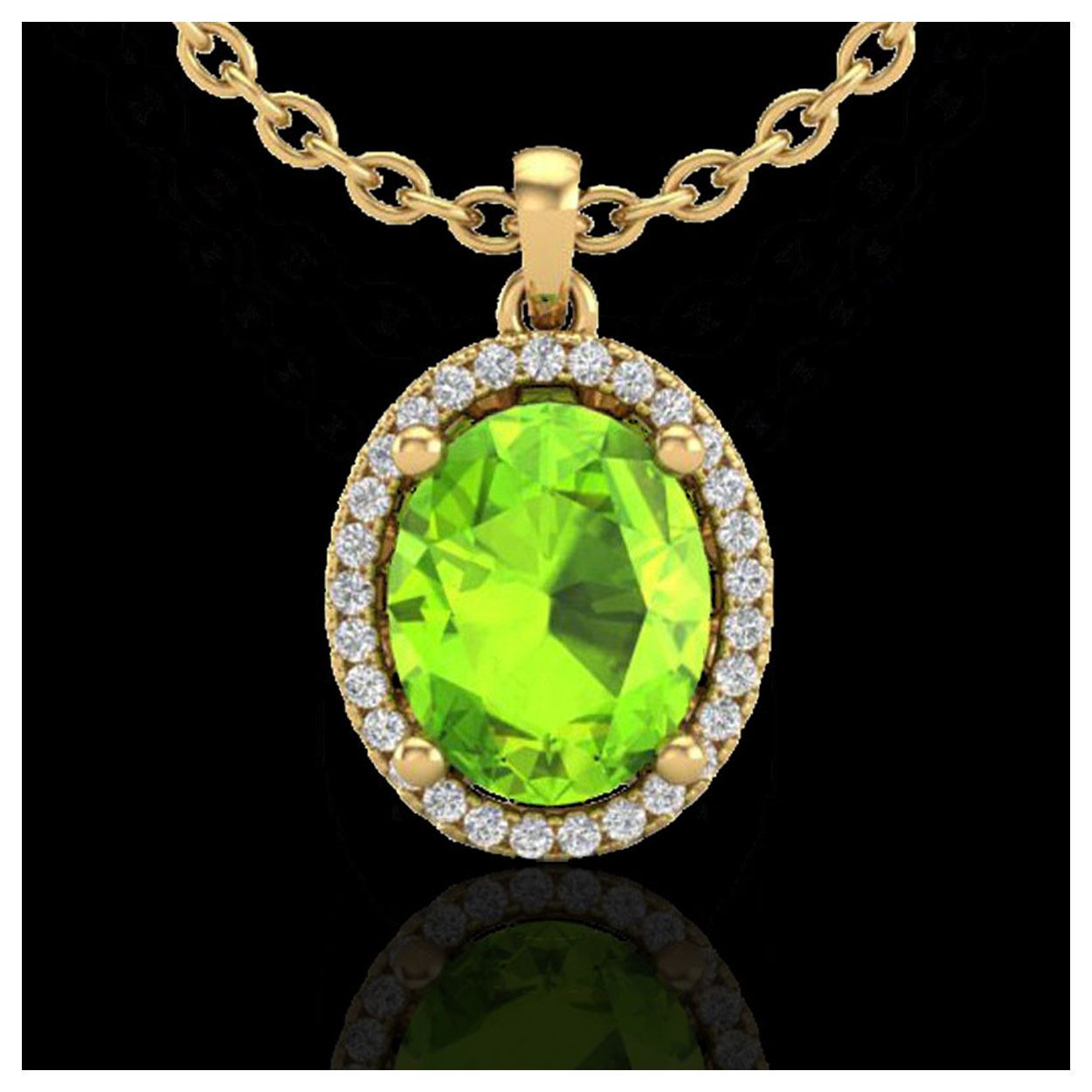 2.50 ctw Peridot & VS/SI Diamond Necklace 18K Yellow Gold