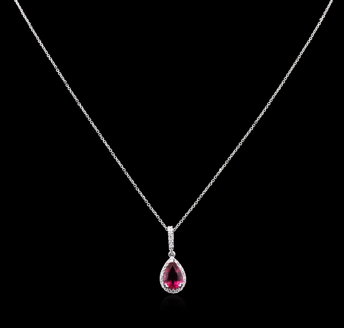 One pendant featuring: 14KT white gold weighing 1.79 grams containing one pink tourmaline with a total weight of 2.50ct and diamonds with a total weight of 0.28ct.