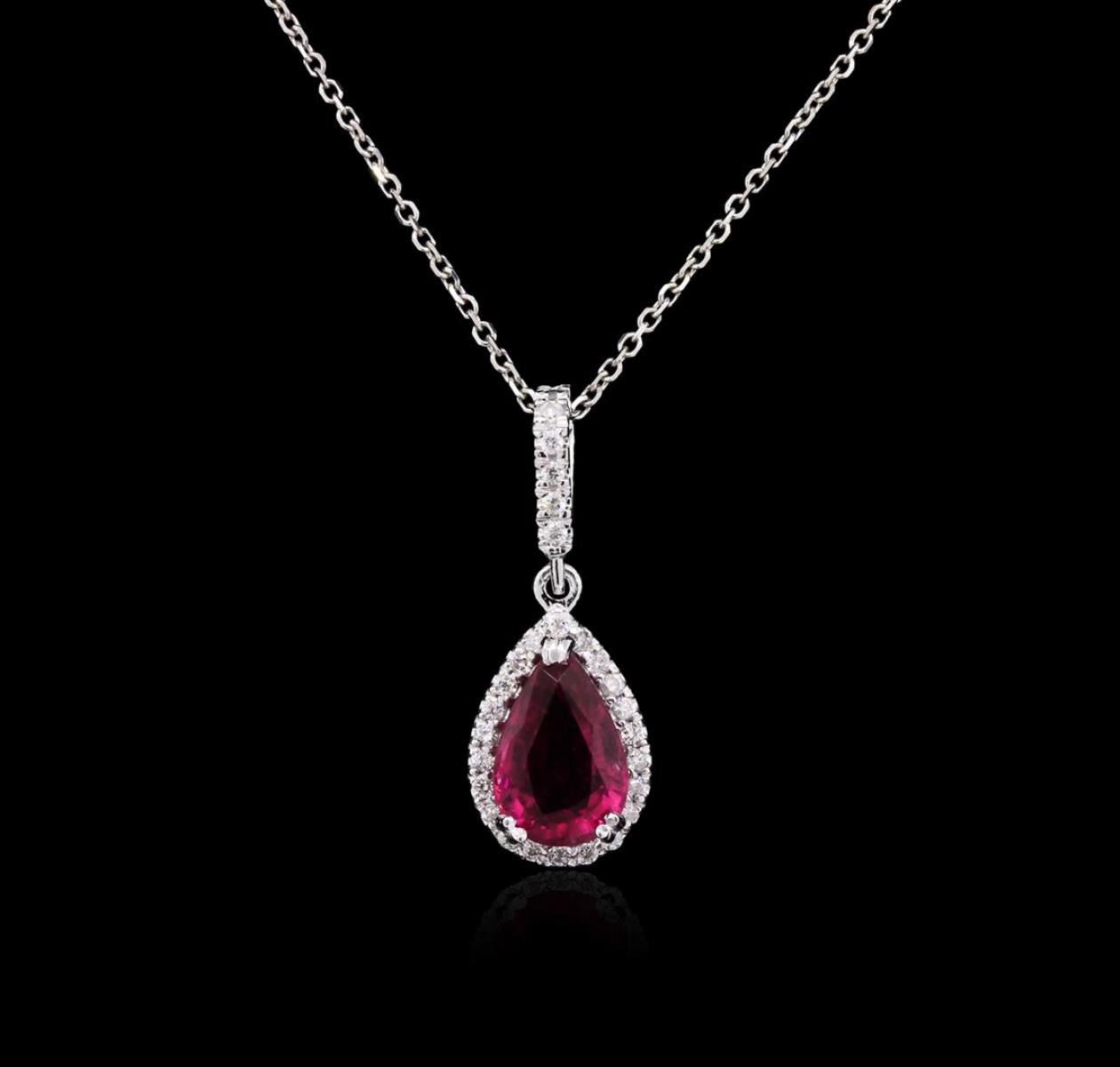 One pendant featuring: 14KT white gold weighing 1.79 grams containing one pink tourmaline with a total weight of 2.50ct and diamonds with a total weight of 0.28ct.