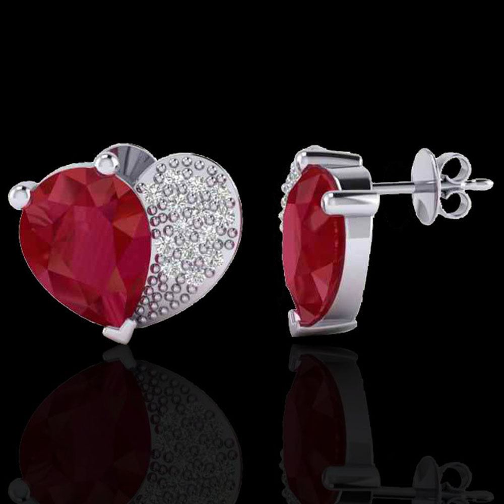 REF-25Y4X - SKU: 20077 ---- 2.50 ctw Ruby & Micro Pave VS/SI Diamond Certified Earrings 10k White Gold
