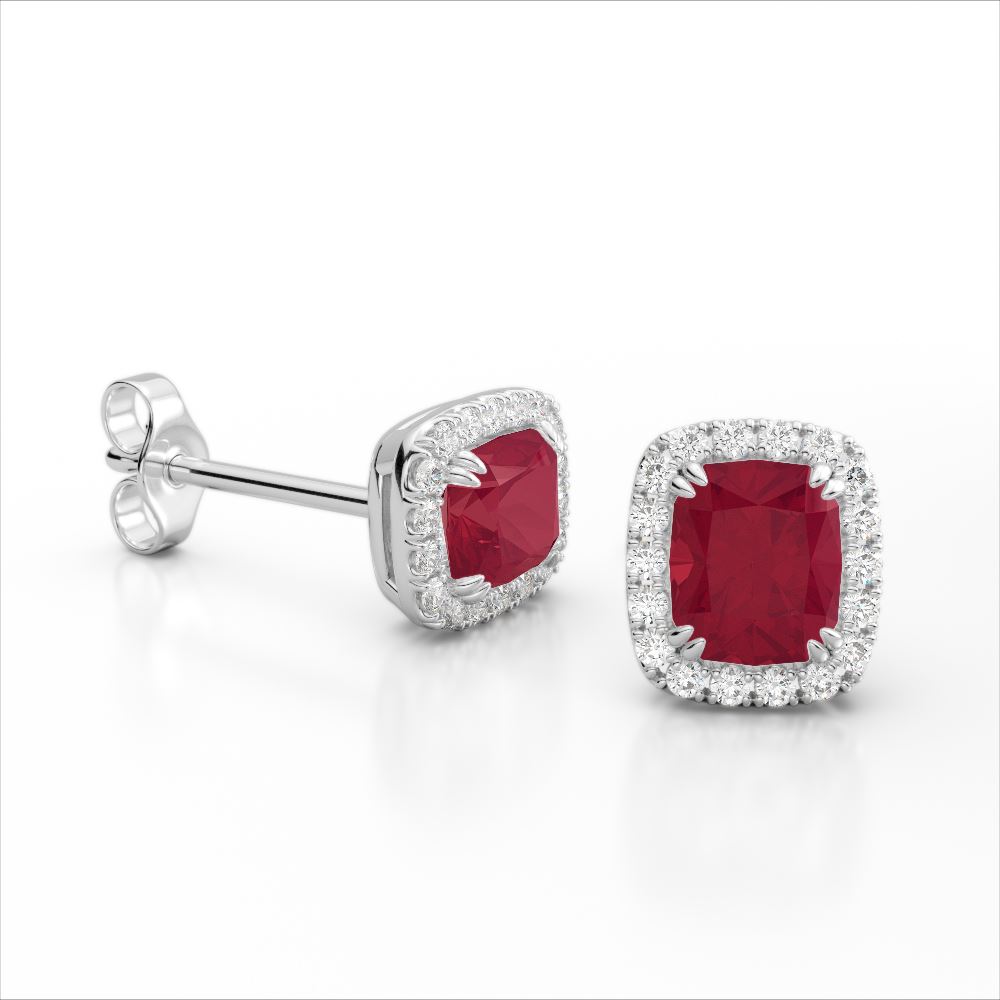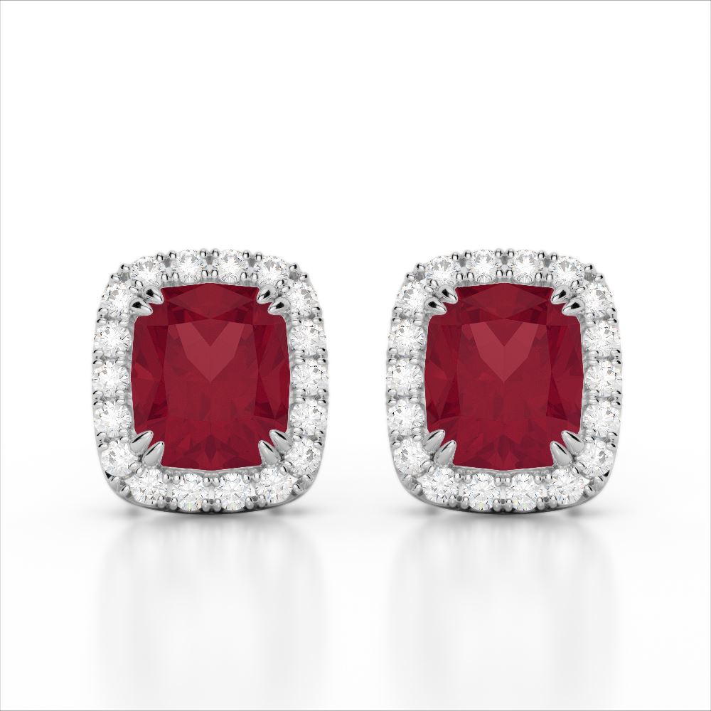 REF-38R2K - SKU: 22868 ---- 2.50 ctw Ruby & Micro Pave VS/SI Diamond Certified Earrings 10k White Gold