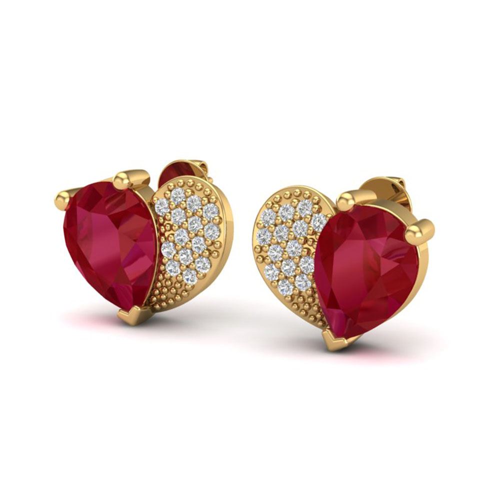 REF-25A4N - SKU: 20078 ---- 2.50 ctw Ruby & Micro Pave VS/SI Diamond Certified Earrings 10k Yellow Gold