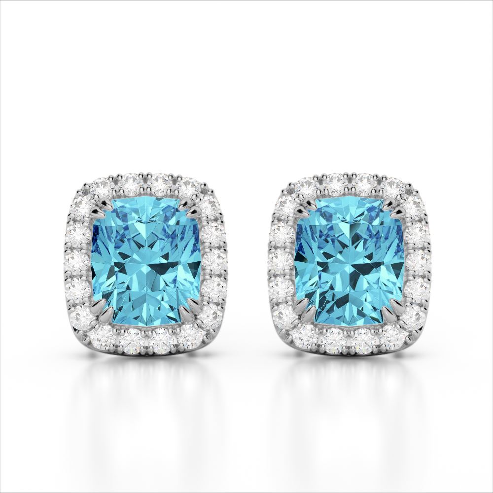 REF-30N8F - SKU: 22872 ---- 2.50 ctw Sky Blue Topaz & Micro VS/SI Diamond Earrings 10k White Gold