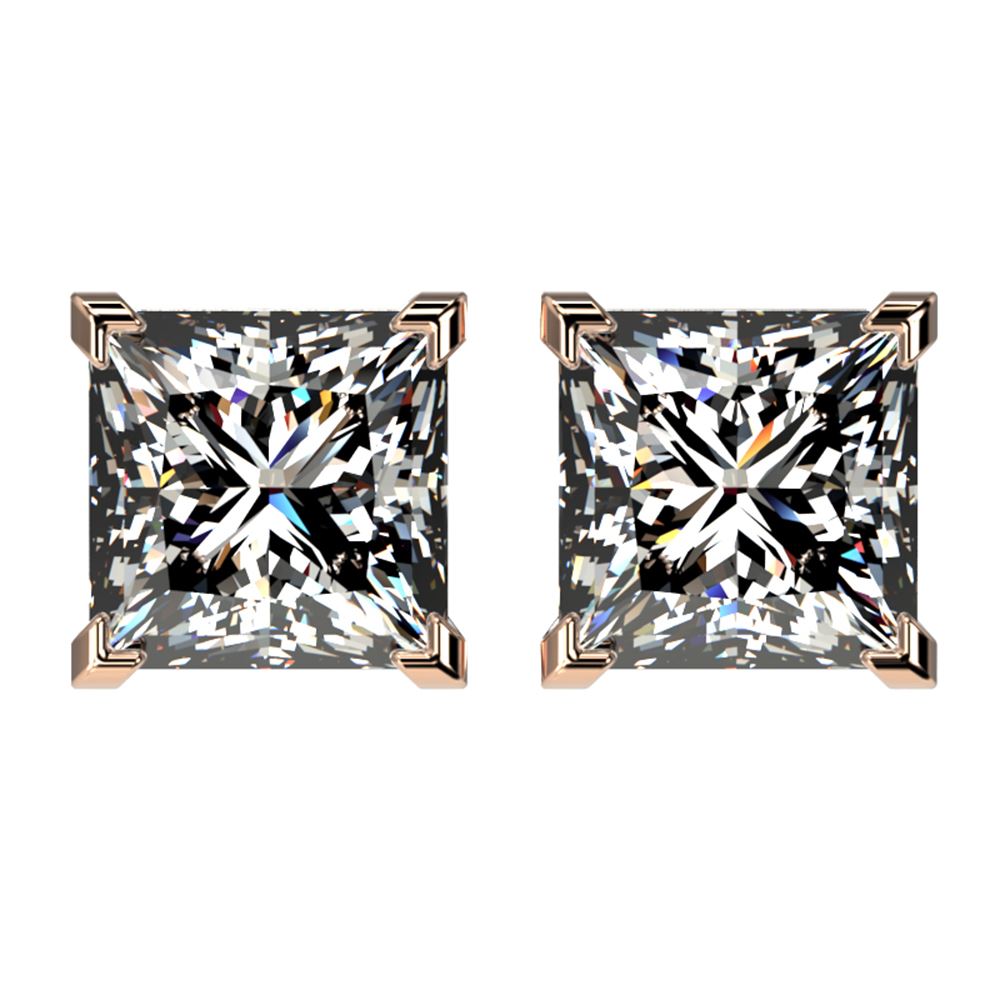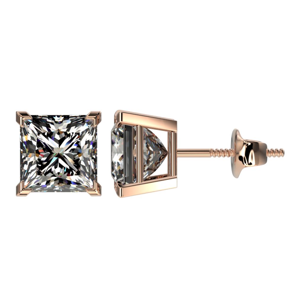 SKU: 33115 ---- 2.50 ctw VS/SI Quality Princess Diamond Stud Earrings 10k Rose Gold