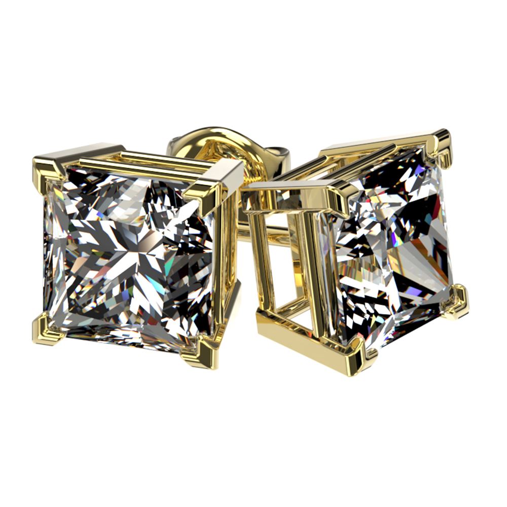 SKU: 33116 ---- 2.50 ctw VS/SI Quality Princess Diamond Stud Earrings 10k Yellow Gold