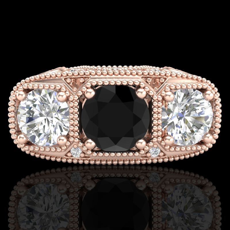 REF-309W3F -37717 ---- 2.51 CTW Fancy Black Diamond Solitaire Art Deco 3 Stone Ring 18K Rose Gold ---- Luxury Designer Brand 3 stone ring Appraised at $18,700 Certificate Number US37717 18k Rose gold, 3 stone ring Size is 7, 3 stone ring measuring approx. Uniform, weighing in total approx. 13 grams. Made in the USA and is stamped 18k, Main stone 0.76 carat total weight containing 1 pieces of Black Opaque color with VS quality Round shape cut Diamond , Stone #2 1.07 carat total weight containing 2 pieces of H-I color with VS/SI quality Round shape cut Diamond , Stone #3 0.68 carat total weight containing 24 pieces of G-H color with VS/SI quality Round shape cut Diamond
