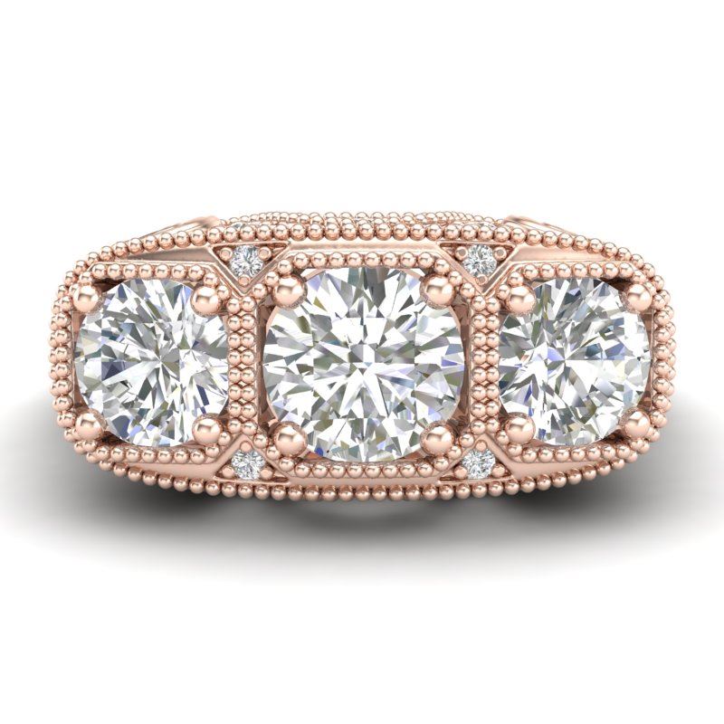 REF-436A4X -36990 ---- 2.51 CTW VS/SI Diamond Solitaire Art Deco 3 Stone Ring 18K Rose Gold ---- Luxury Designer Brand 3 stone ring Appraised at $26,400 Certificate Number US36990 18k Rose gold, 3 stone ring Size is 7, 3 stone ring measuring approx. Uniform, weighing in total approx. 14 grams. Made in the USA and is stamped 18k, Main stone 0.76 carat total weight containing 1 pieces of H-J color with VS/SI quality Round shape cut Diamond , Stone #2 1.07 carat total weight containing 2 pieces of H-I color with VS/SI quality Round shape cut Diamond , Stone #3 0.68 carat total weight containing 24 pieces of G-H color with VS/SI quality Round shape cut Diamond
