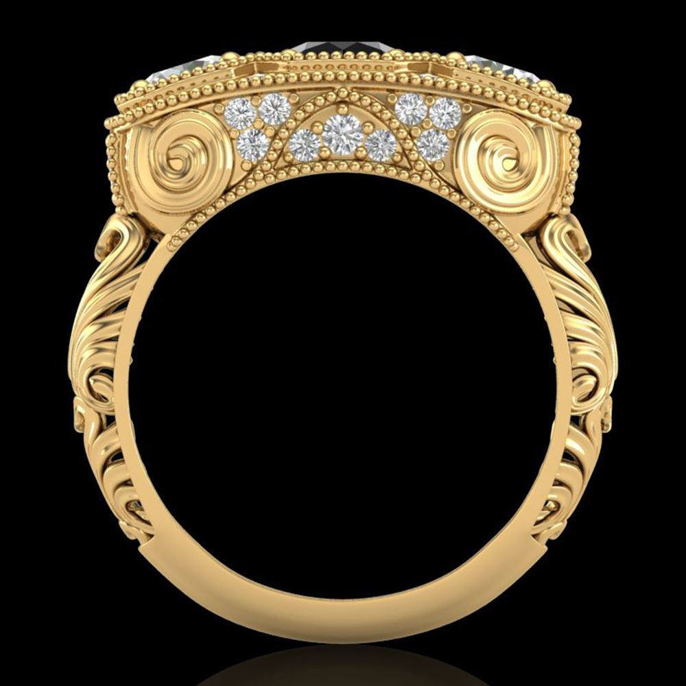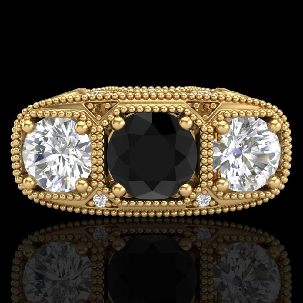 REF-309A3N - SKU: 37718 ---- 2.51 ctw Fancy Black Diamond Art Deco 3 Stone Ring 18k Yellow Gold