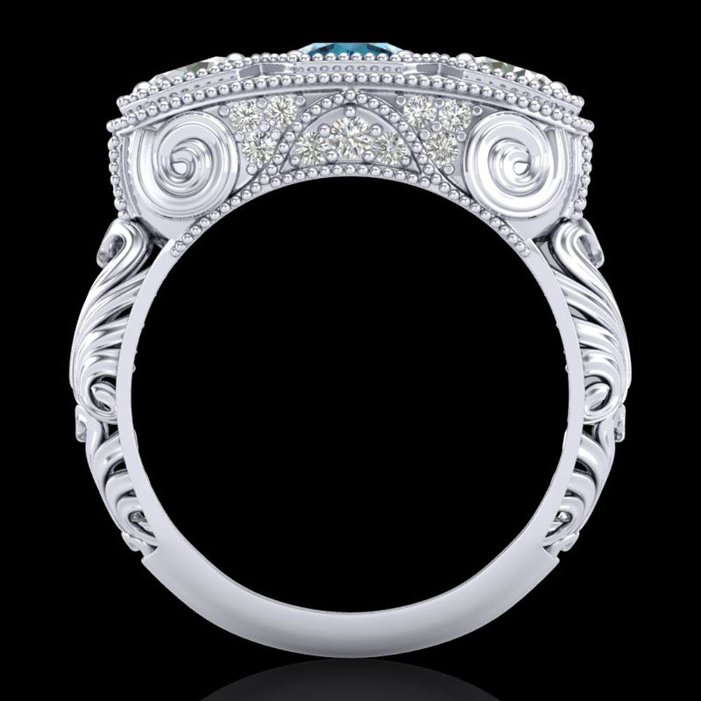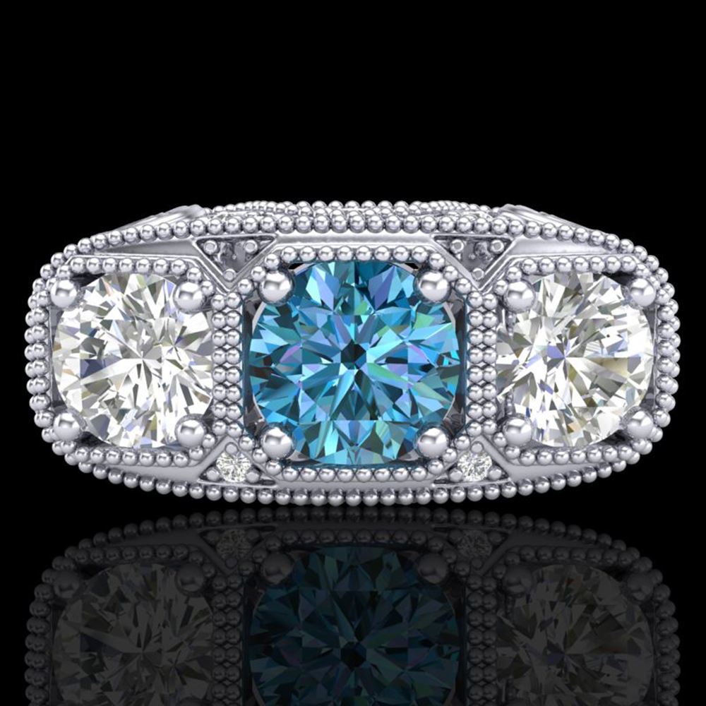 REF-345A5N - SKU: 37719 ---- 2.51 ctw Intense Blue Diamond Art Deco 3 Stone Ring 18k White Gold