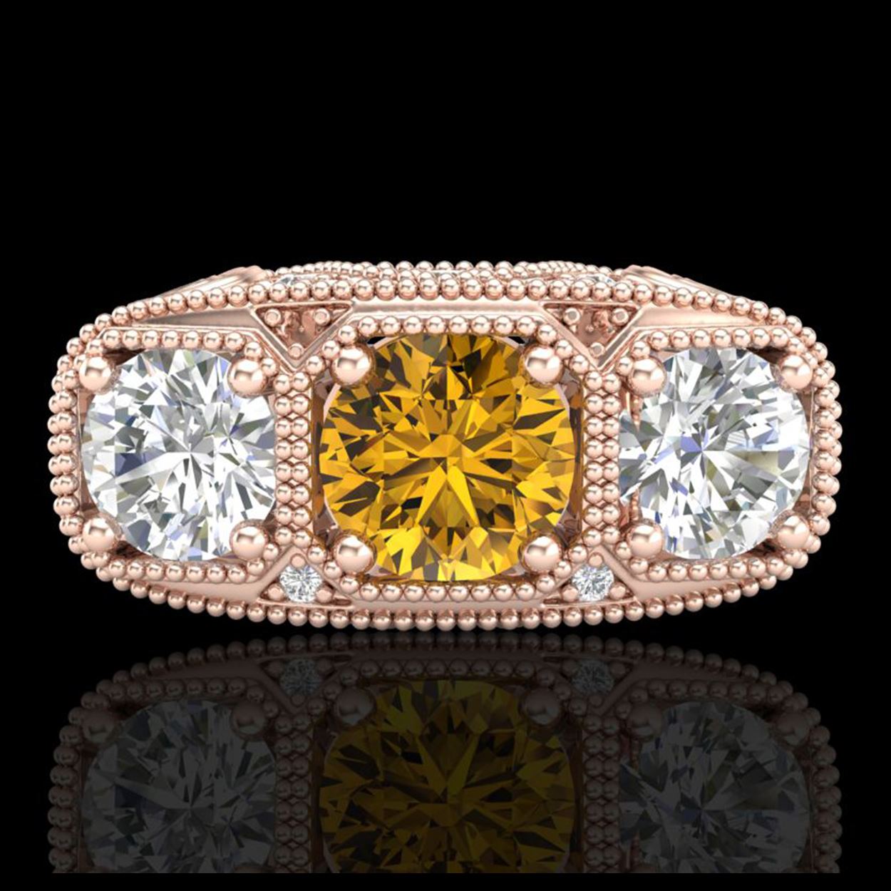 2.51 ctw Intense Fancy Yellow Diamond Art Deco Ring 18K Rose Gold