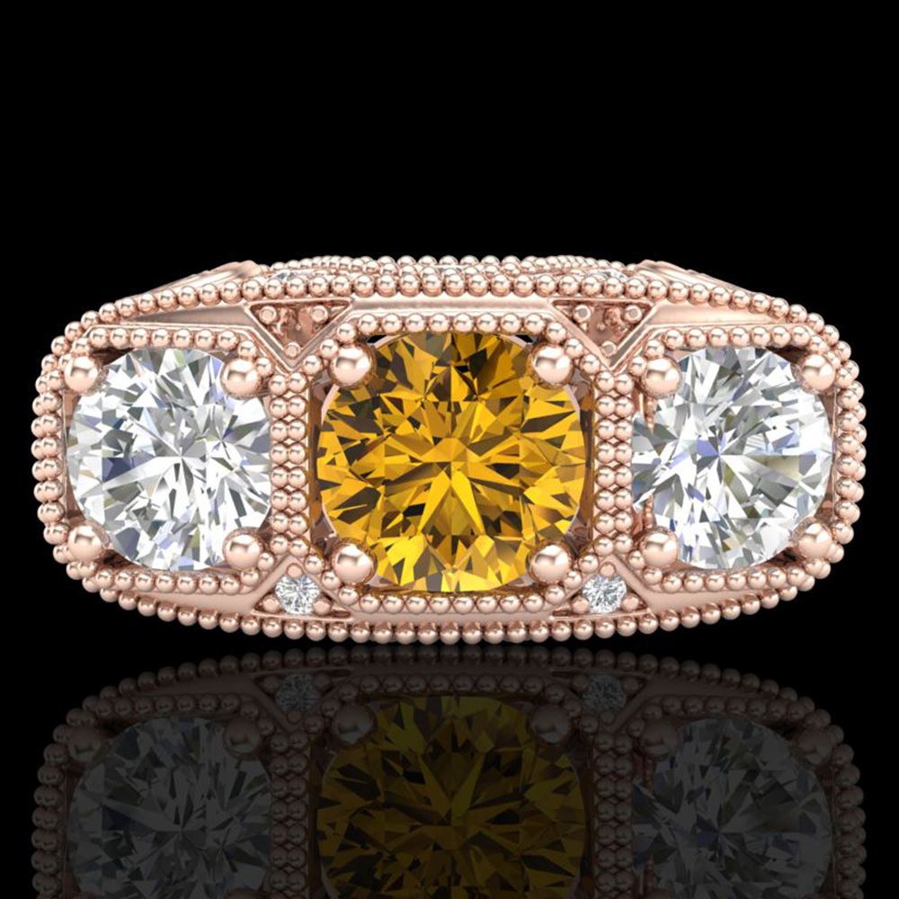 REF-345H5R - SKU: 37722 ---- 2.51 ctw Intense Fancy Yellow Diamond Art Deco Ring 18k Rose Gold