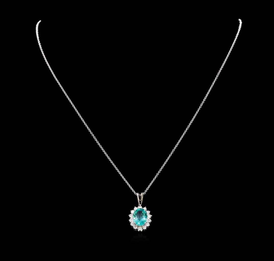 One pendant with chain featuring: 14KT white gold weighing 2.50 grams containing one apatite with a total weight of 2.52ct and diamonds with a total weight of 0.55ct.