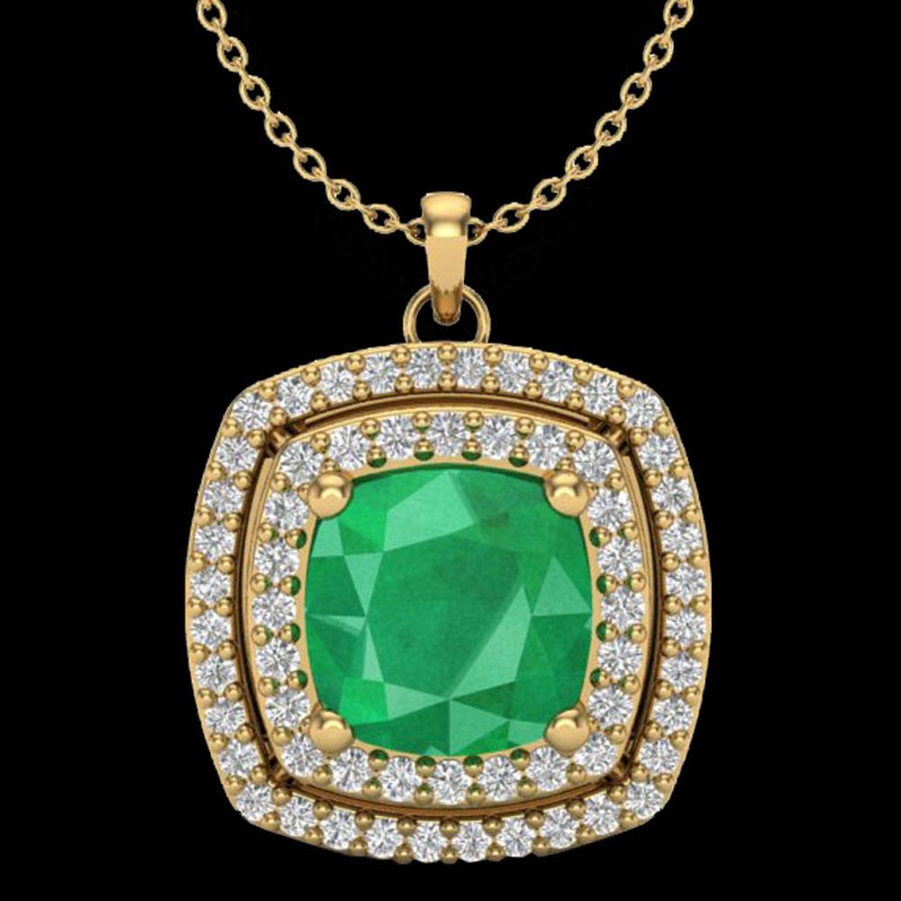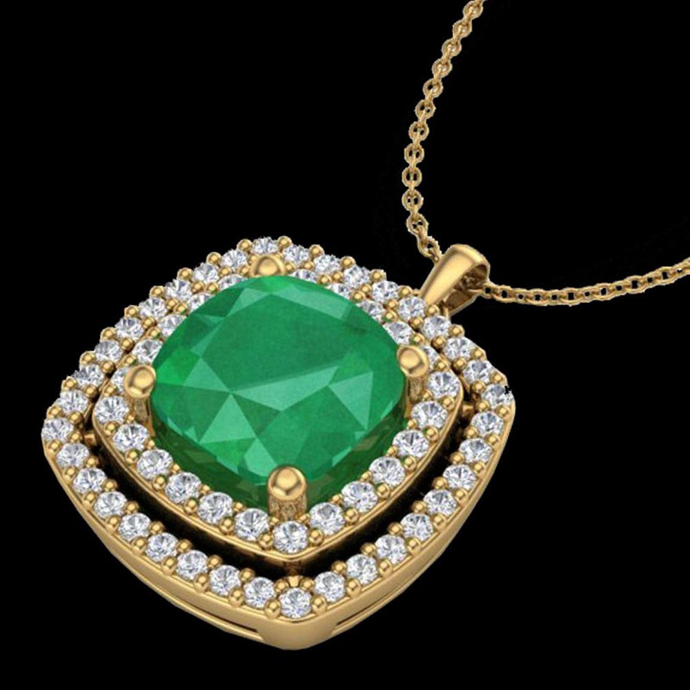 REF-76K4Y - SKU: 20455 ---- 2.52 ctw Emerald & Micro Pave VS/SI Diamond Necklace 18k Yellow Gold