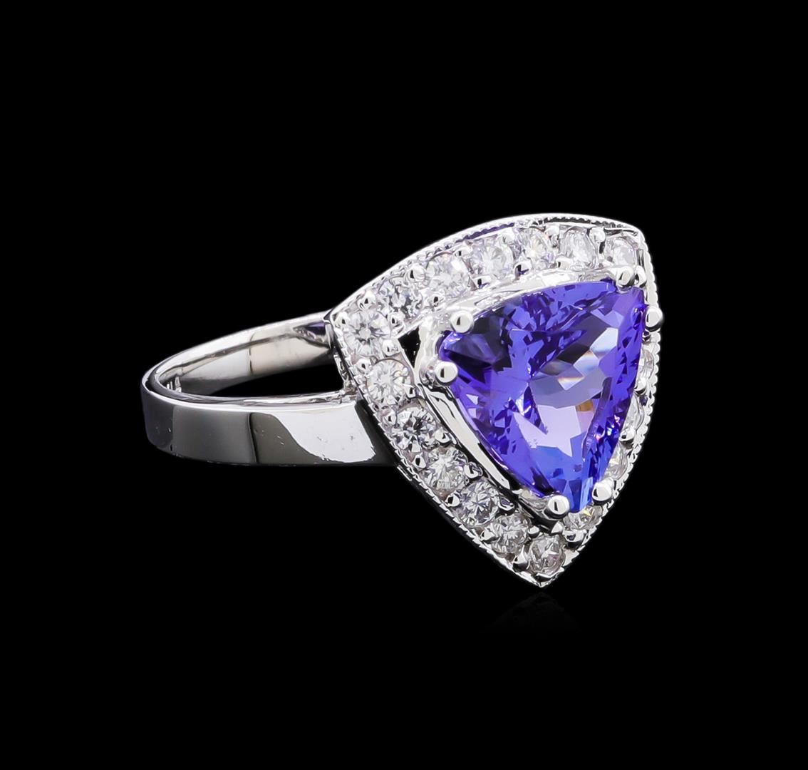 One ring featuring: 14KT white gold weighing 3.92 grams containing one tanzanite with a total weight of 2.52ct and side diamonds with a total weight of 0.38ct.