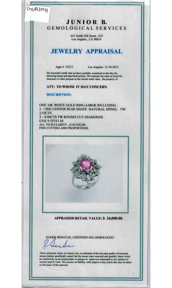 14K WHITE GOLD NATURAL BURMA SPINEL RING:6.08 GRAMS/DIAMOND:0.96 CT/SPINEL:2.52 CT/#GVR1041