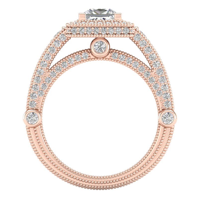 REF-509H3A -37125 ---- 2.53 CTW Princess VS/SI Diamond Solitaire Art Deco Ring 18K Rose Gold ---- Luxury Designer Brand Ring Appraised at $25,200 Certificate Number US37125 18k Rose gold, Ring Size is 7, Ring measuring approx. Uniform, weighing in total approx. 12 grams. Made in the USA and is stamped 18k, Main stone 1 carat total weight containing 1 pieces of H-J color with VS/SI quality Princess shape cut Diamond , Stone #2 1.53 carat total weight containing 138 pieces of H-I color with VS/SI quality Round shape cut Diamond