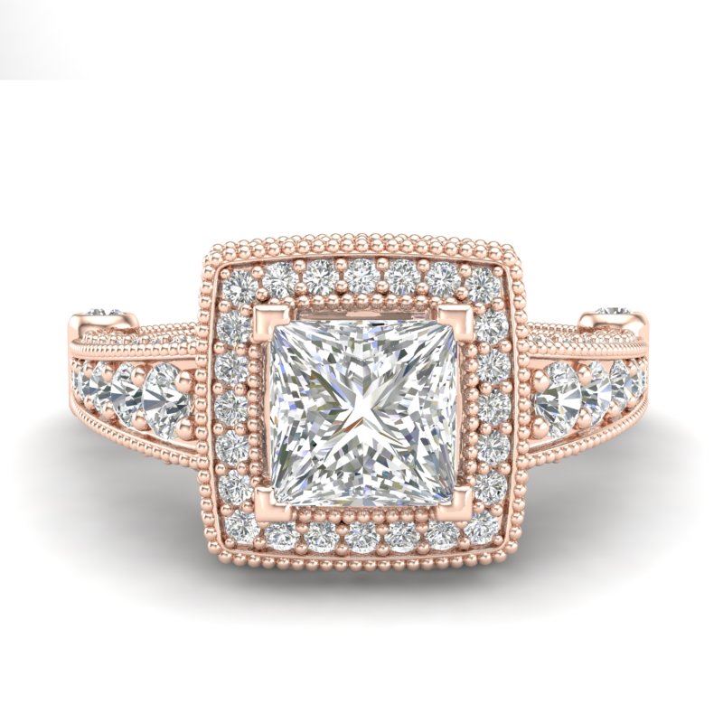 REF-509H3A -37125 ---- 2.53 CTW Princess VS/SI Diamond Solitaire Art Deco Ring 18K Rose Gold ---- Luxury Designer Brand Ring Appraised at $25,200 Certificate Number US37125 18k Rose gold, Ring Size is 7, Ring measuring approx. Uniform, weighing in total approx. 12 grams. Made in the USA and is stamped 18k, Main stone 1 carat total weight containing 1 pieces of H-J color with VS/SI quality Princess shape cut Diamond , Stone #2 1.53 carat total weight containing 138 pieces of H-I color with VS/SI quality Round shape cut Diamond