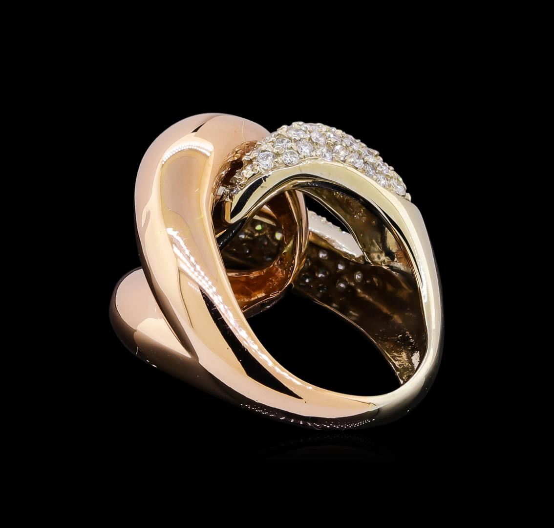 One electronically tested 14KT rose and white gold lady's combination cast & assembled fashion ring with a tapered split shank with a bright polish finish. The featured lady's ring has a shank measuring 3.76 millimeters wide. Identified with markings of "K14". Condition is new, good workmanship. Containing: One Hundred Fifty-Eight prong set round brilliant cut diamonds, measuring 1.70 - 1.55 x 0.99mm (depth est.) approximate total weight of 158 Stones = 2.53ct. Graded in the setting. Clarity: SI-1 to SI-2. Color: G - I. Cut Good. Total Weight of Diamonds 2.53ct. Total Weight of Ring 16.10gm. GAS Appraised at $9,125.00.