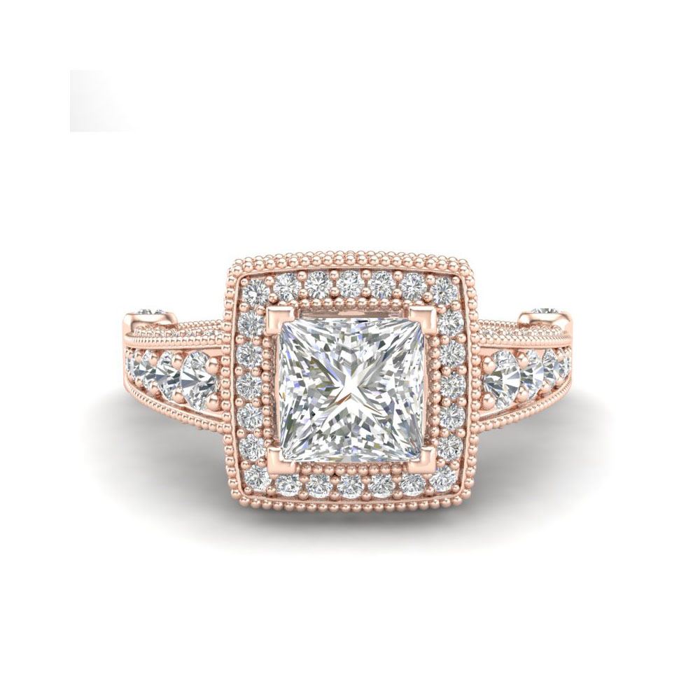 2.53 ctw Princess VS/SI Diamond Solitaire Art Deco Ring 18K Rose Gold