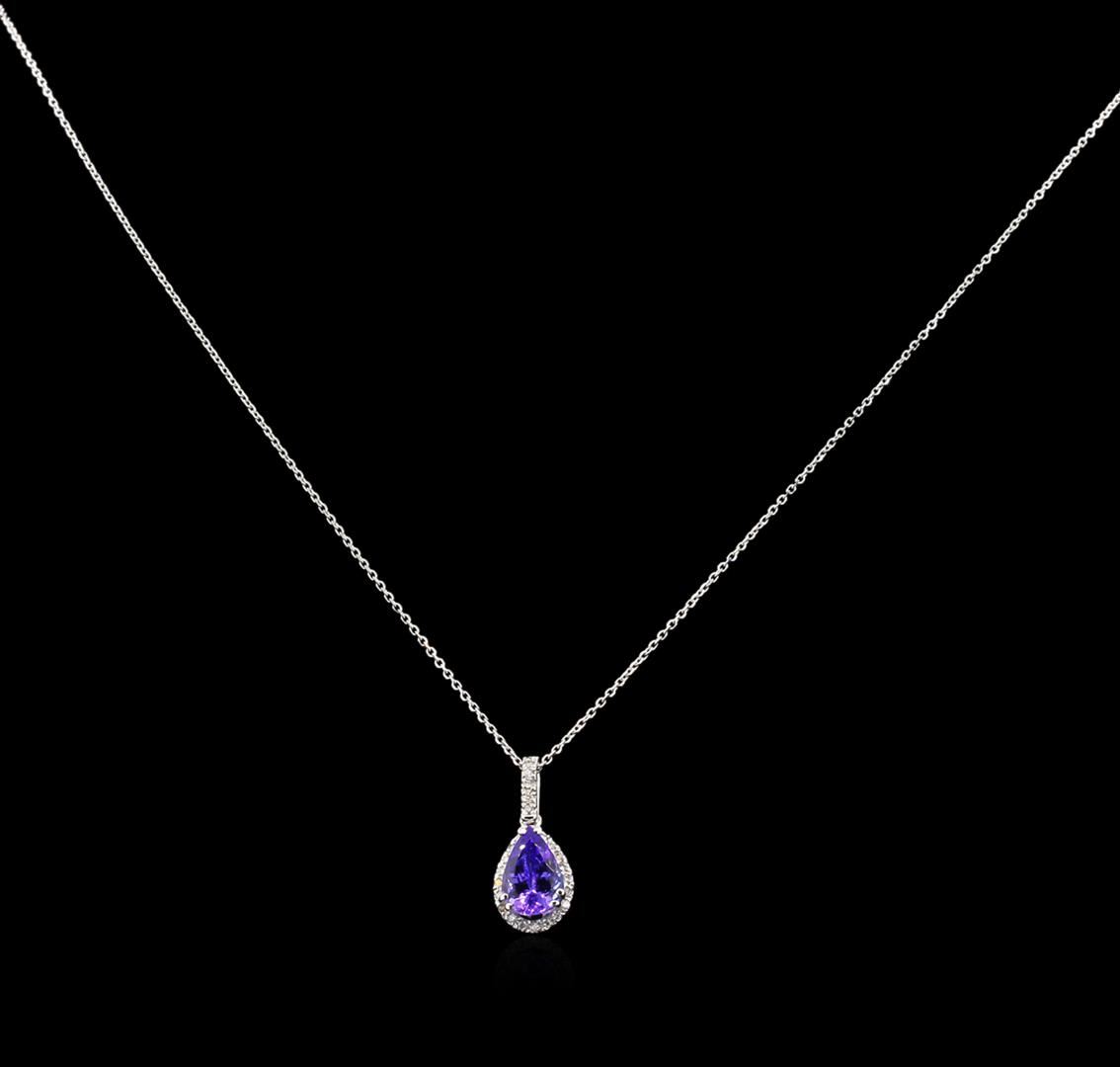 One pendant with chain featuring: 14KT white gold weighing 1.75 grams containing one tanzanite center stone with a total weight of 2.53ct and 26 diamonds with a total weight of 0.15ct.