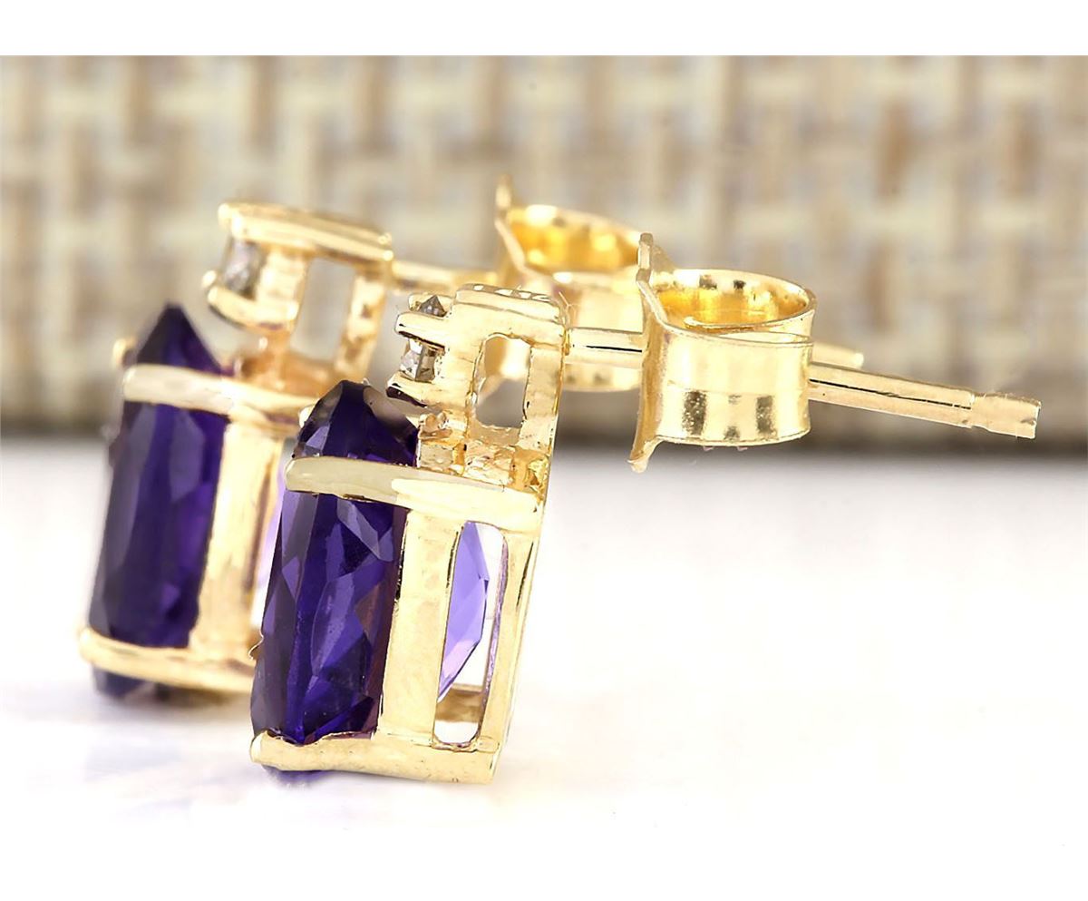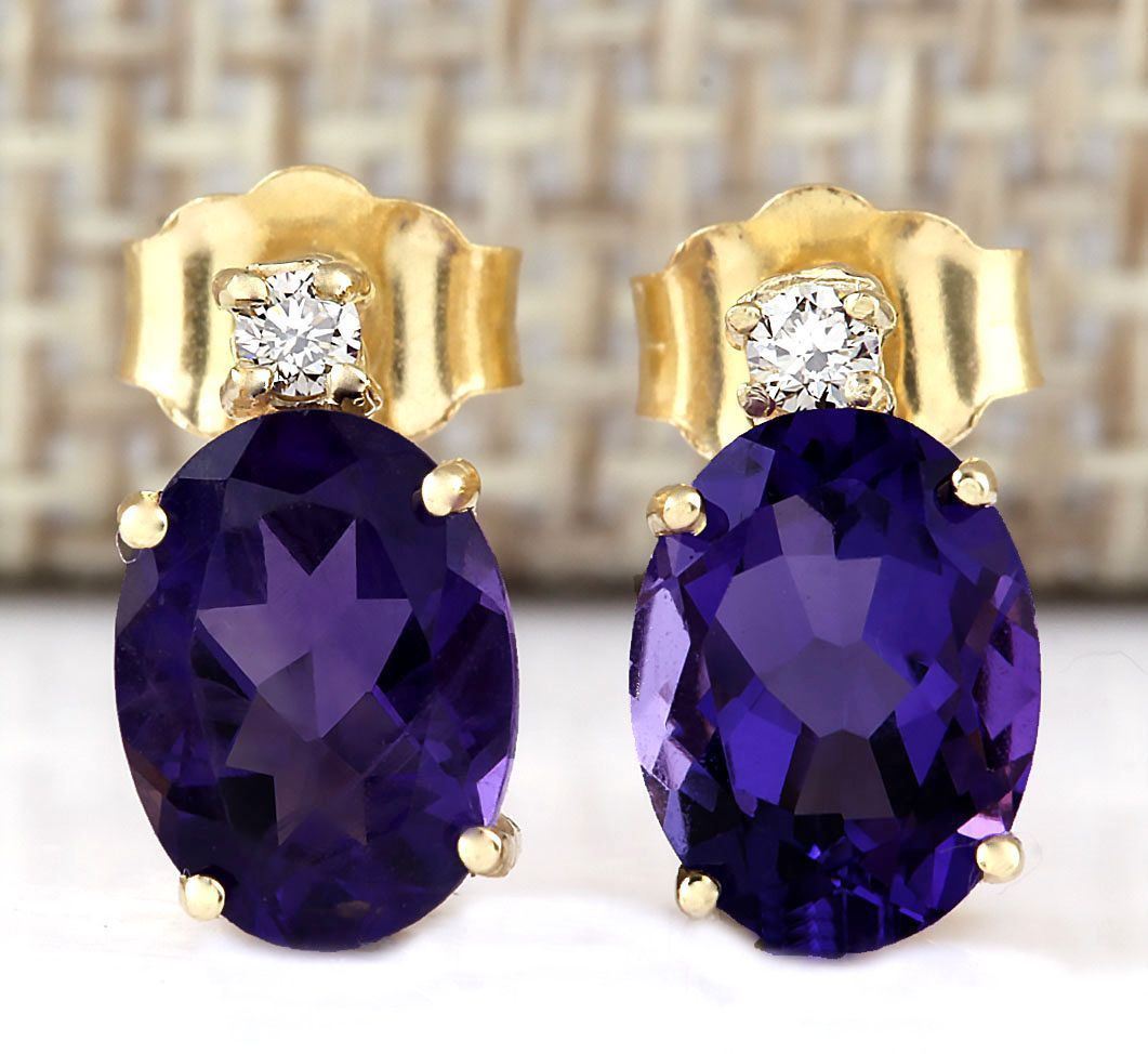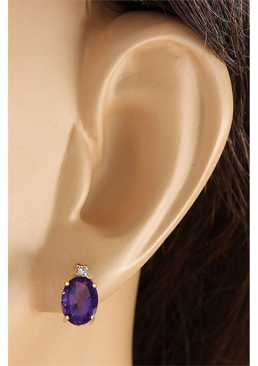 Stamped: 14K Total Earring Weight: 1.5 Grams Diamond Weight: Total natural diamond weight is .05carat. SI1-SI2 clarity / G-H color Gemstone Weight: Total Natural Amethyst Weight is 2.50ctw (Measures: 8.10x6.05mm) Main Stone Color: Purple Face Measure: 10.45x6.05mm SKU: [703298]