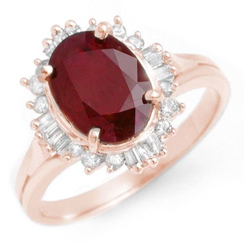 2.55 CTW Ruby & Diamond Ring 14K Rose Gold ---- Luxury Designer Brand Ring Appraised Retail Price at $4,100 ---- SKU Number US13120 14k Rose gold Ring Size is 6.5, Ring measuring approx. 1/2" x 5/8" , weighing in total approx. 3.7 grams. Made in the USA and is stamped 14k, Main stone 2.27 carat total weight containing 1 pieces of Mid-Opaque-Deep Red color with AAA quality Oval shape cut Ruby , Stone #2 0.28 carat total weight containing 24 pieces of H-I color with VS/SI quality Round shape cut