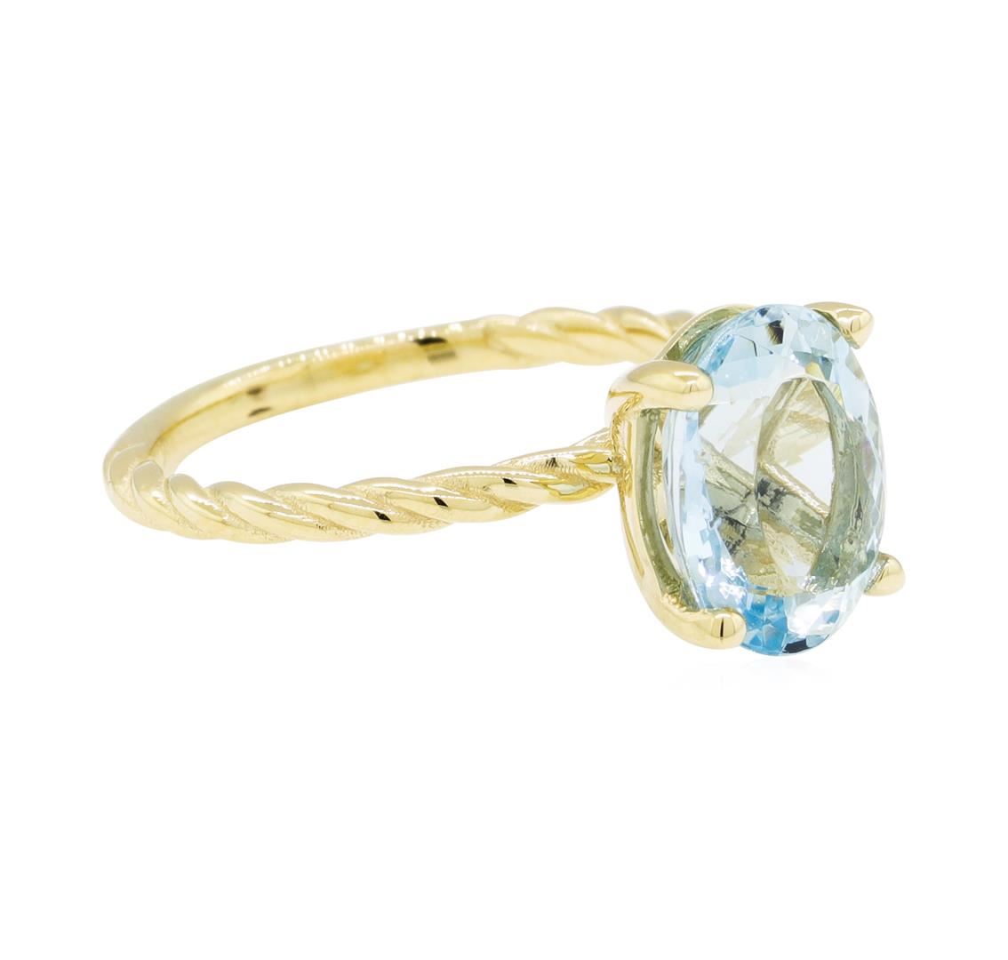 One lady's ring featuring: 14KT yellow gold weighing 2.90 grams containing one blue topaz weighing 2.55ct.