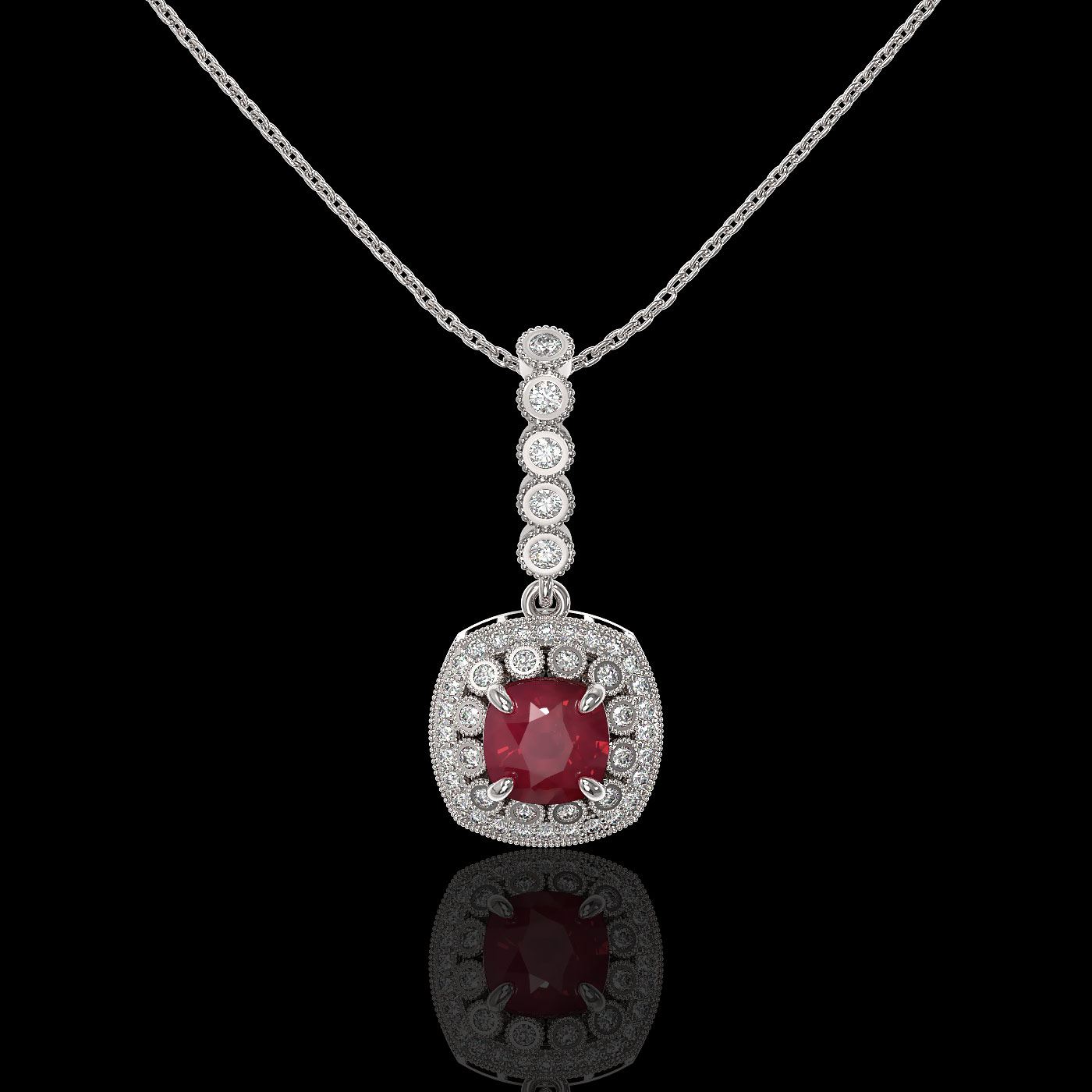 REF-100K2Y - SKU: 44075 ---- 2.55 ctw Certified Ruby & Diamond Victorian Necklace 14K White Gold