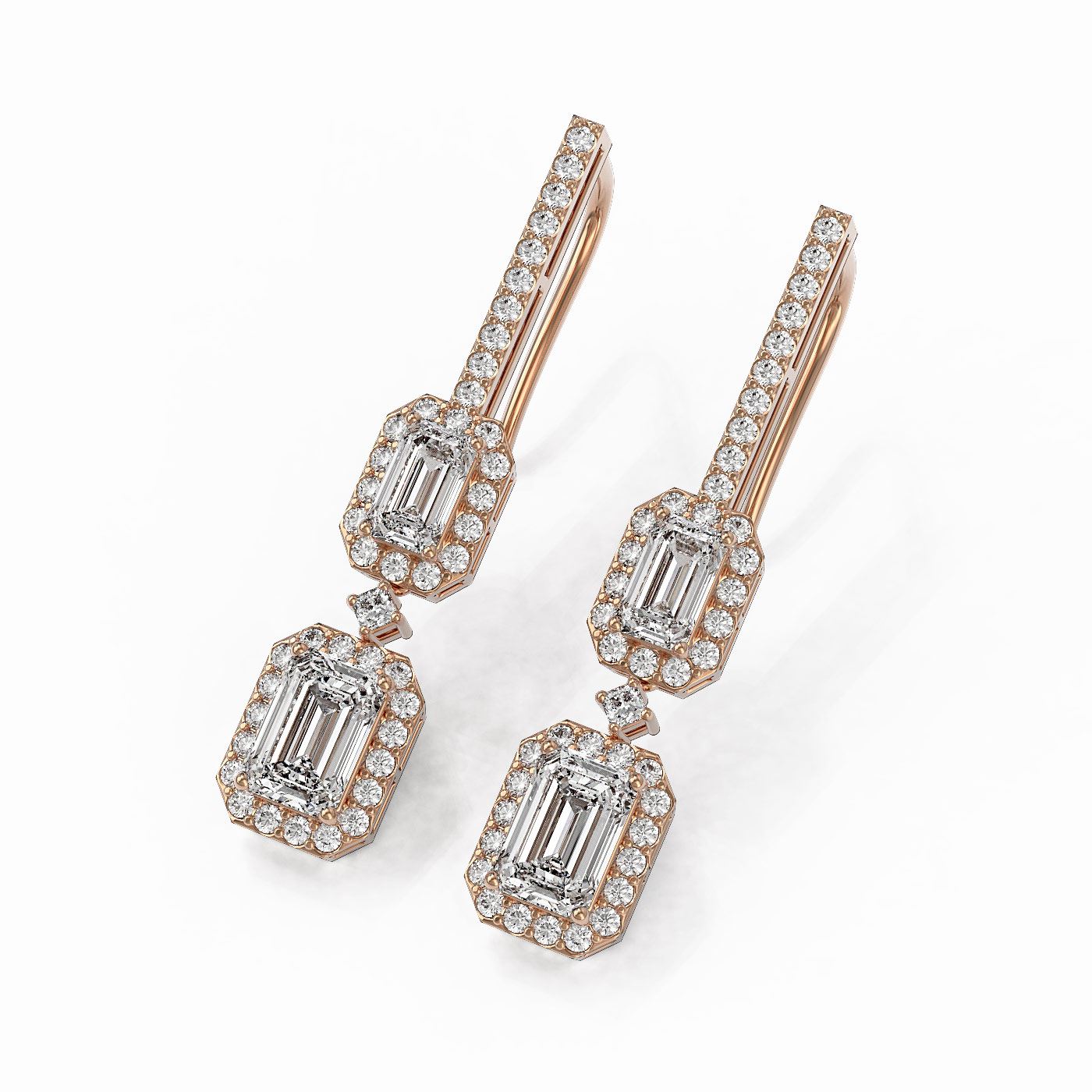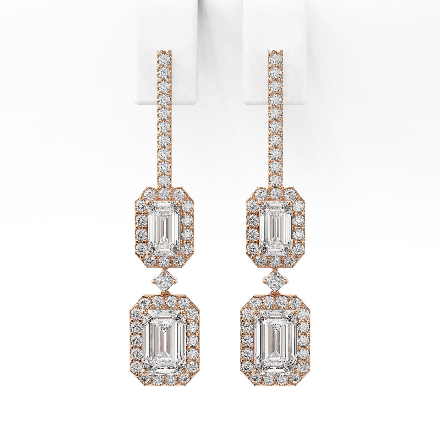 2.55 ctw Emerald Cut Diamond Designer Earrings 18K Rose Gold