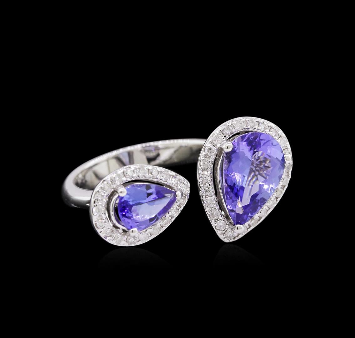 One ring featuring: 14KT white gold weighing 4.04 grams containing 2 tanzanite with a total weight of 2.55ct and diamonds with a total weight of 0.30ct.