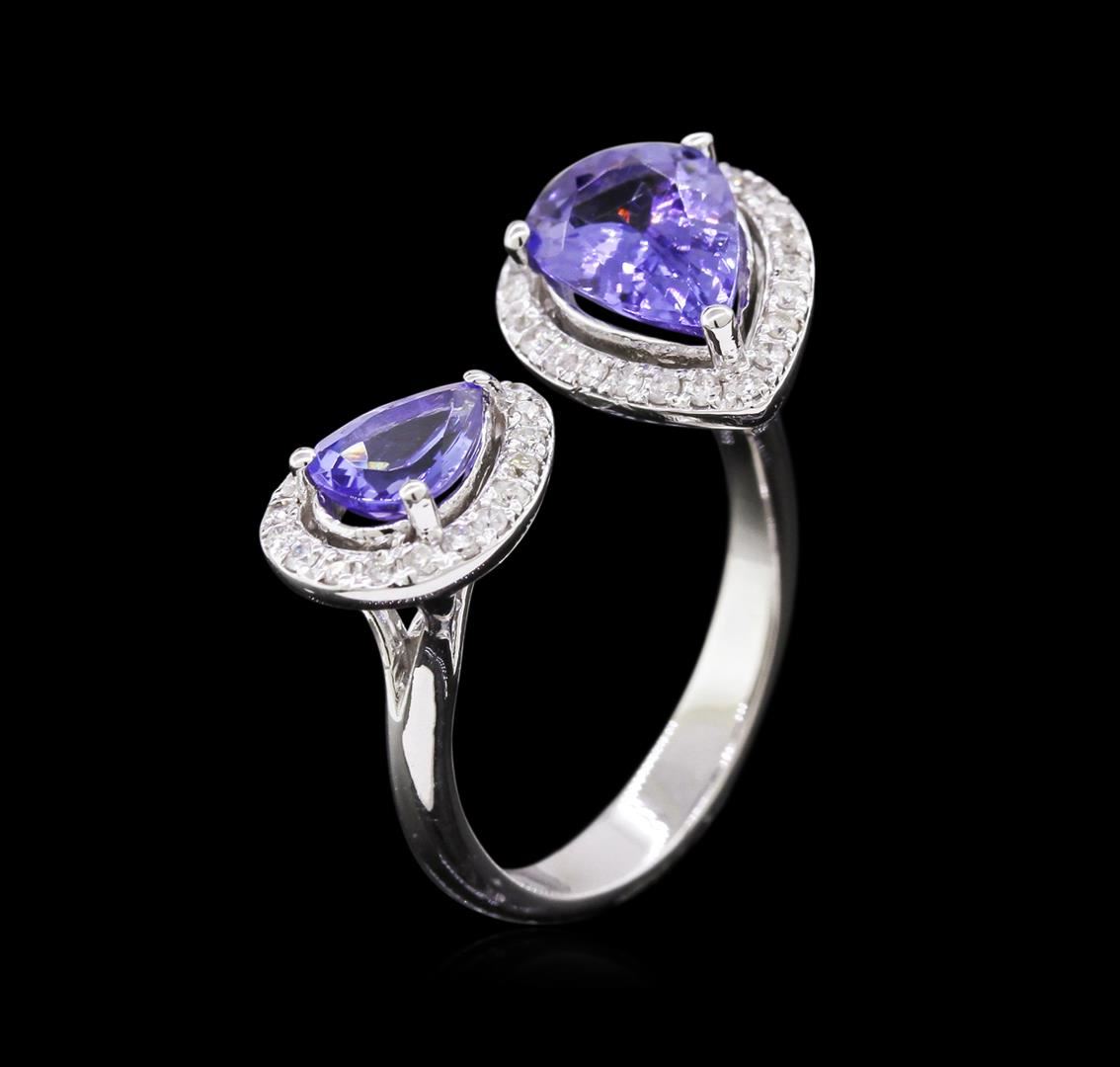 One ring featuring: 14KT white gold weighing 4.04 grams containing 2 tanzanite with a total weight of 2.55ct and diamonds with a total weight of 0.30ct.